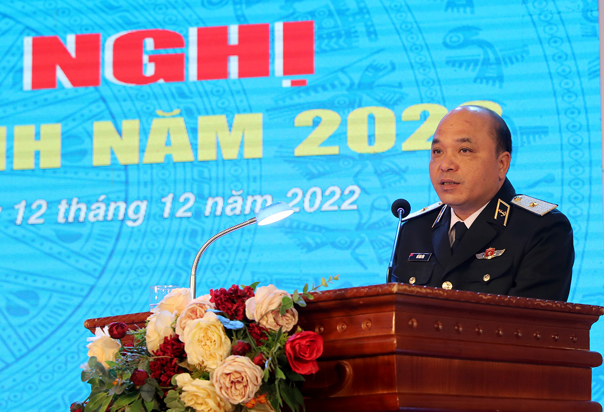 Phát biểu chỉ đạo hội nghị, Chuẩn Đô đốc Đỗ Văn Yên ghi nhận và biểu dương cán bộ, nhân viên, người lao động Công ty Hải Thành đã nỗ lực, đoàn kết, triển khai và thực hiện thắng lợi nhiệm vụ năm 2022.