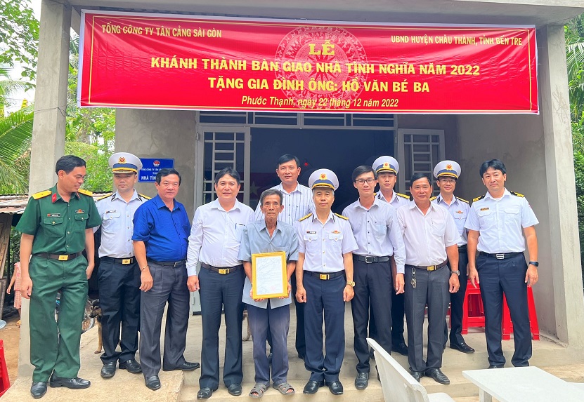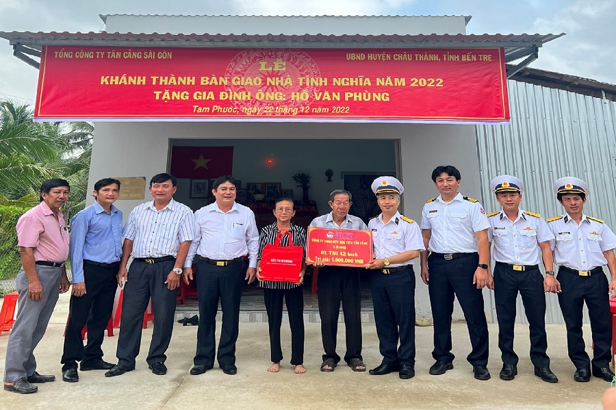 Ngày 22/12, tại tỉnh Bến Tre, thừa ủy quyền của Tổng công ty Tân cảng Sài Gòn, Công ty Hoa tiêu Tân cảng phối hợp với cấp ủy, chính quyền địa phương tổ chức khánh thành và bàn giao 2 nhà tình nghĩa cho các gia đình chính sách, có hoàn cảnh khó khăn trên địa bàn huyện Châu Thành.