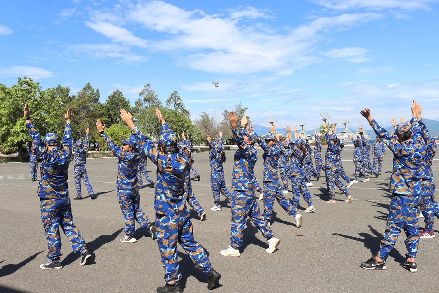 Đoàn trải nghiệm tập thể dục buổi sáng