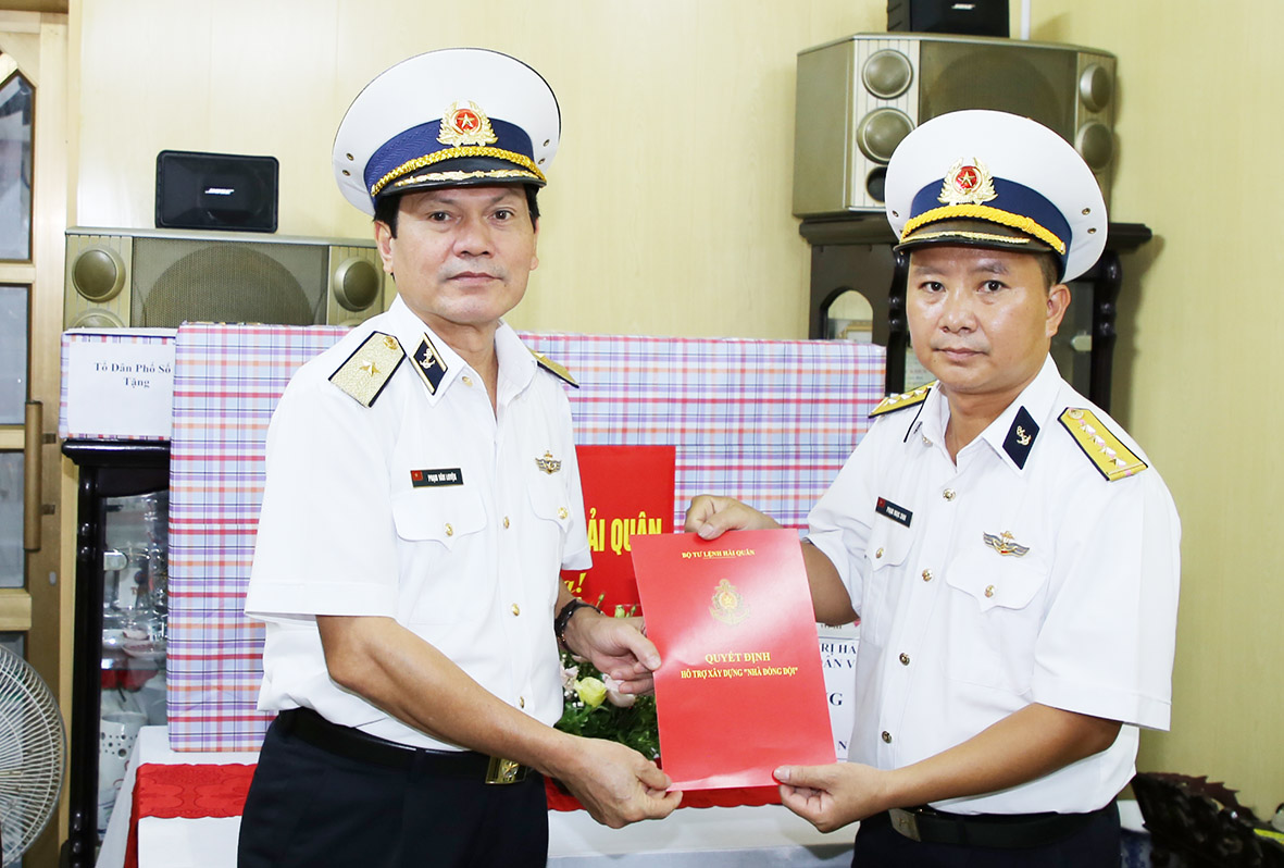 Chuẩn Đô đốc Phạm Văn Luyện trao quyết định hỗ trợ xây dựng nhà đồng đội cho Đại úy QNCN Phạm Ngọc Sinh