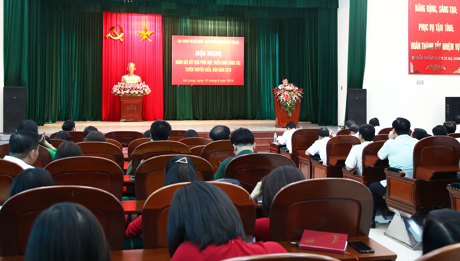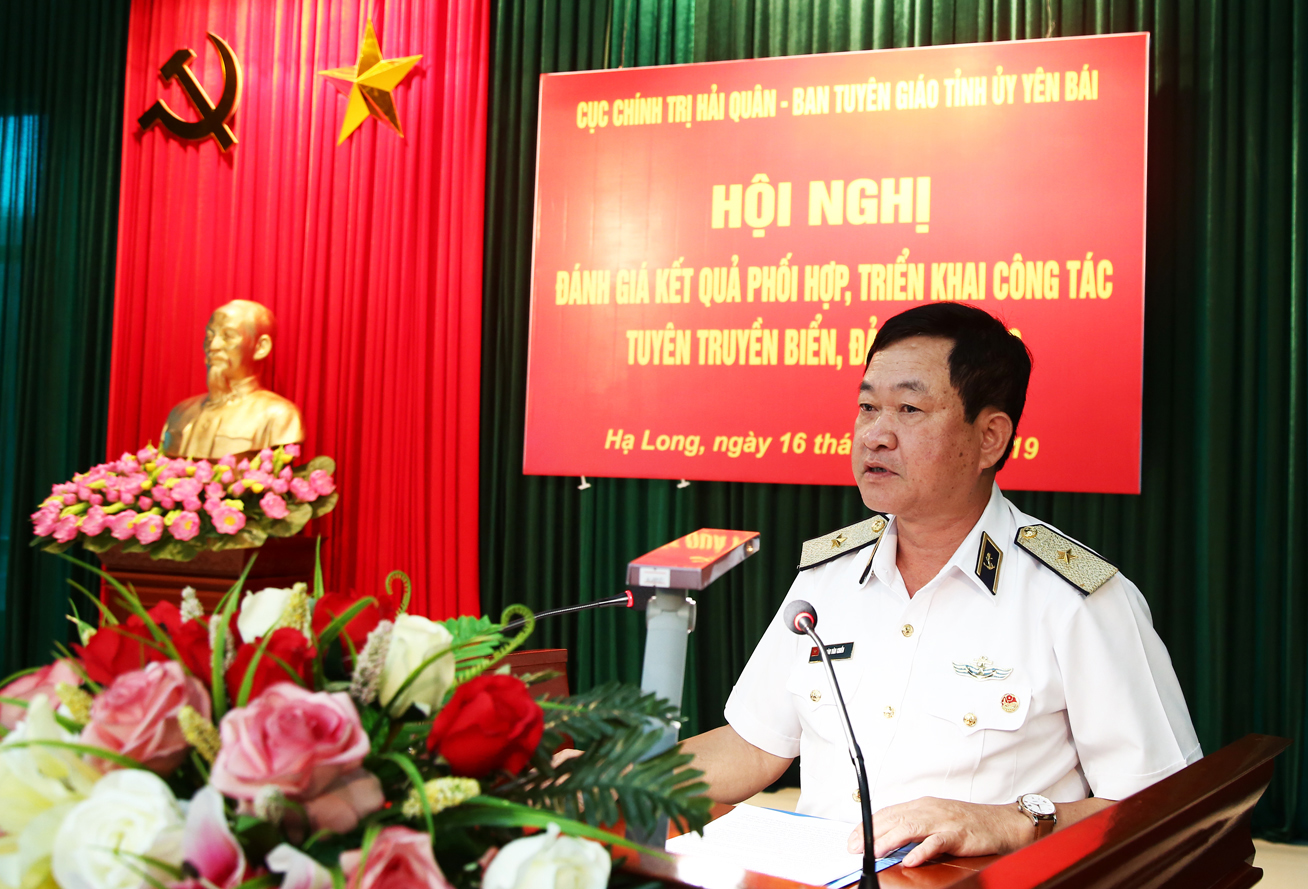 Chiều 16-8, tại Đoàn An Điều dưỡng 22 Hạ Long, Cục Chính trị Hải quân và Ban Tuyên giáo Tỉnh ủy Yên Bái tổ chức Hội nghị đánh giá kết quả phối hợp, triển khai công tác tuyên truyền biển, đảo (TTBĐ) năm 2019. Chuẩn Đô đốc Đoàn Văn Chiều, Ủy viên Thường vụ Đảng ủy Quân chủng, Chủ nhiệm Chính trị Hải quân và đồng chí Nguyễn Minh Tuấn, Ủy viên Ban Thường vụ Tỉnh ủy, Trưởng ban Tuyên giáo Tỉnh ủy Yên Bái đồng chủ trì.