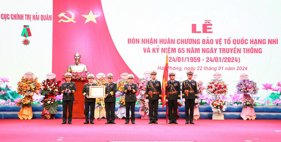 Chiều 22/1, tại Hải Phòng, Cục Chính trị Hải quân tổ chức Lễ đón nhận Huân chương Bảo vệ Tổ quốc hạng Nhì và kỷ niệm 65 năm Ngày truyền thống (24/1/1959 - 24/1/2024). Tới dự có Phó Đô đốc Trần Thanh Nghiêm, Ủy viên Trung ương Đảng, Tư lệnh Hải quân; Trung tướng Nguyễn Văn Bổng, Bí thư Đảng ủy, Chính ủy Hải quân; thủ trưởng, nguyên thủ trưởng Bộ Tư lệnh Hải quân, Cục Chính trị qua các thời kỳ; Anh hùng Lực lượng vũ trang nhân dân; đại diện lãnh đạo các cơ quan, đơn vị…