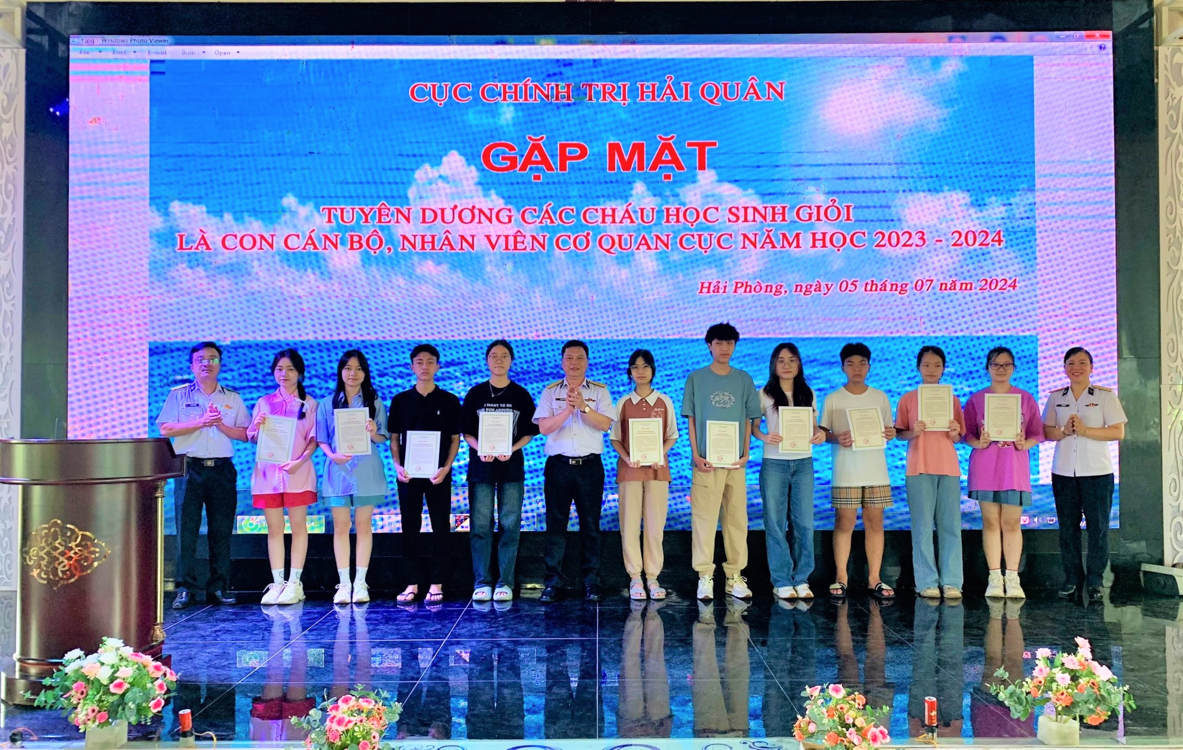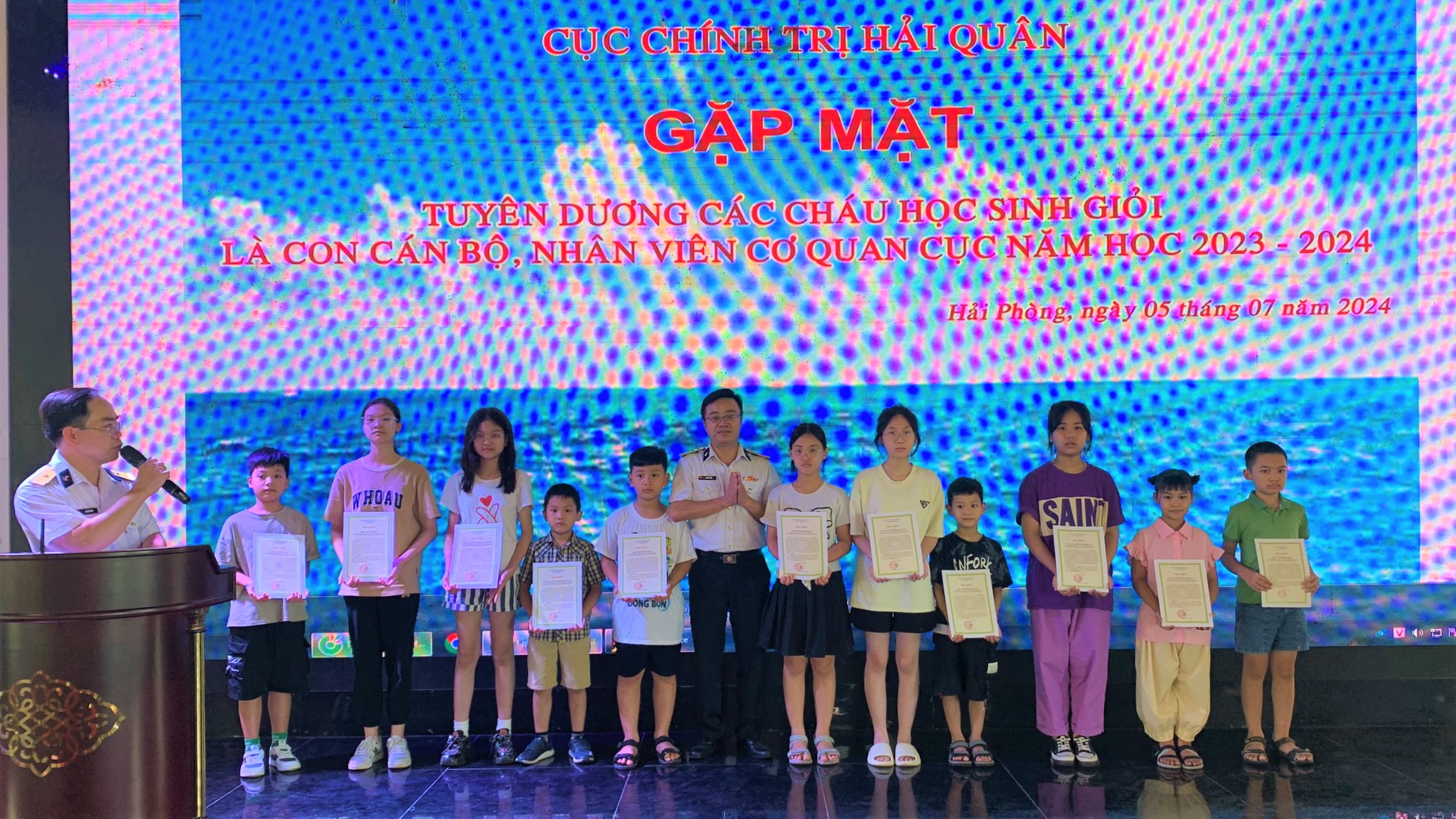 Sáng 5/7, tại Hải Phòng, Cục Chính trị Hải quân tổ chức Gặp mặt tuyên dương các cháu học sinh giỏi năm học 2023-2024 là con cán bộ, nhân viên cơ quan Cục.