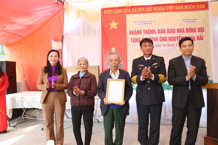 Tại lễ bàn giao, gia đình ông Nguyễn Hoàng Hải đã nhận được nhiều phần quà ý nghĩa, thiết thực từ Cục Chính trị Hải quân, Hội Cựu chiến binh huyện Hải Hậu, UBND xã Hải Sơn và các cơ quan, đoàn thể địa phương.