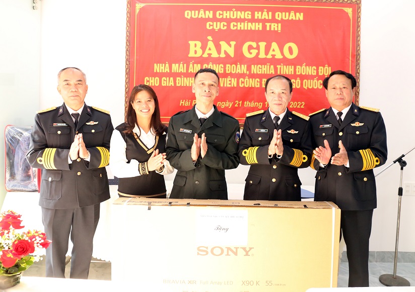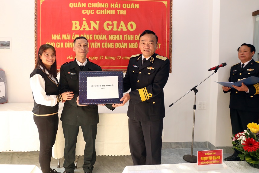 Chiều 21/12, tại Tổ dân phố số 7, phường Vĩnh Niệm, quận Lê Chân, TP. Hải Phòng, Cục Chính trị Hải quân tổ chức khánh thành, bàn giao nhà “Mái ấm công đoàn-Nghĩa tình đồng đội” cho gia đình đồng chí Ngô Quốc Việt, Đoàn viên công đoàn thuộc Công đoàn cơ sở Nhà máy X46, Cục Kỹ thuật Hải quân. Dự buổi bàn giao có Chuẩn Đô đốc Phạm Văn Quang, Phó Chủ nhiệm Chính trị Hải quân.