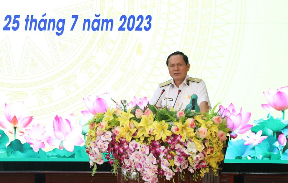 Chuẩn Đô đốc Phạm Văn Luyện thông tin tại hội nghị