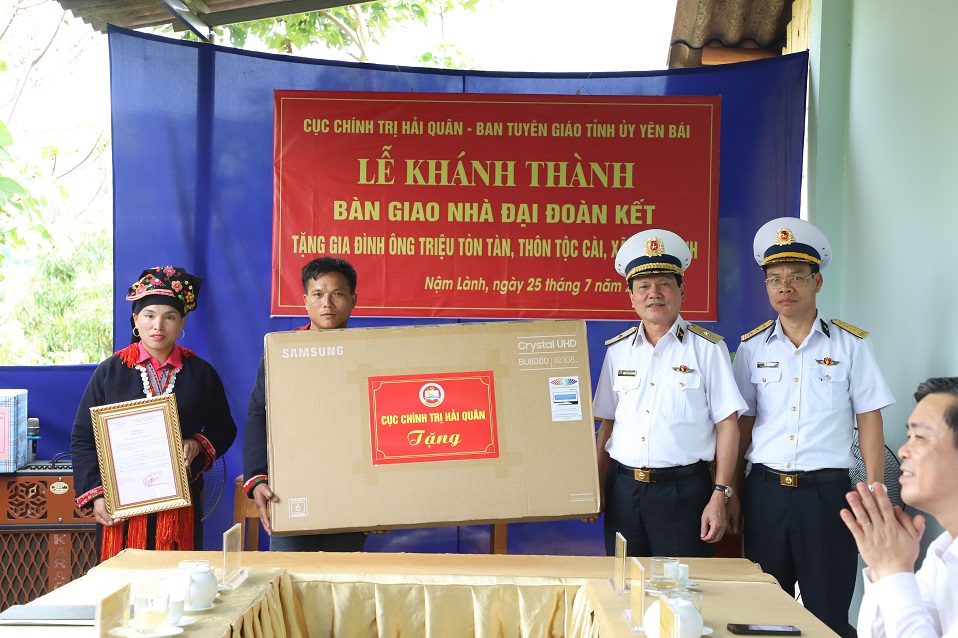 Chiều cùng ngày, Cục Chính trị Hải quân phối hợp với cấp ủy, chính quyền địa phương tổ chức khánh thành và bàn giao nhà đại đoàn kết cho gia đình ông Triệu Tòn Tàn, trú tại thôn Tộc Cài, xã Nậm Lành, huyện Văn Chấn. Gia đình ông Tàn thuộc diện hộ nghèo có hoàn cảnh đặc biệt khó khăn, không có khả năng tự làm được nhà ở.