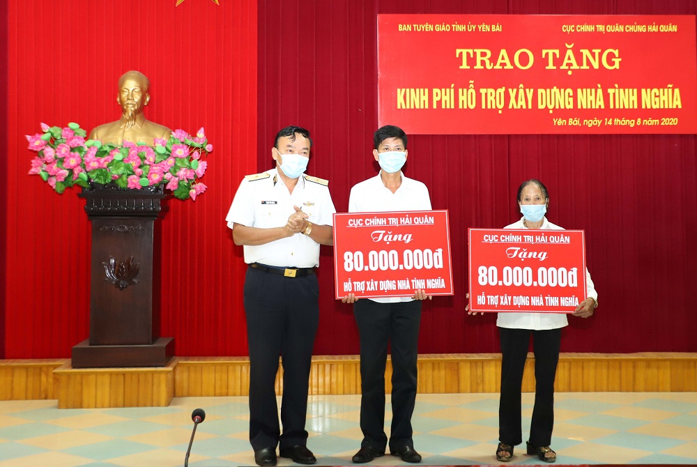 Nhân dịp này, đoàn công tác của Cục Chính trị Hải quân đã trao tặng kinh phí hỗ trợ xây dựng 2 nhà tình nghĩa trên địa bàn xã Thạch Lương (thị xã Nghĩa Lộ) và xã Châu Quế Hạ (huyện Văn Yên) với tổng số tiền 160 triệu đồng.