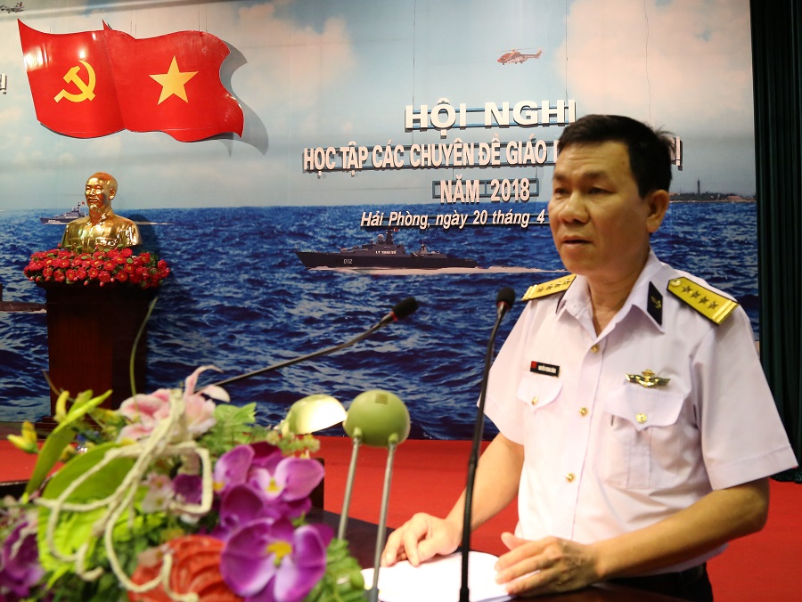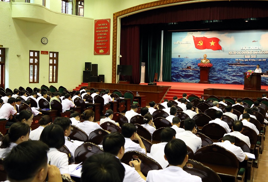 Sáng 20-4, tại Hải Phòng, Cục Chính trị Hải quân đã tổ chức Hội nghị học tập các chuyên đề về công tác giáo dục chính trị năm 2018. Đại tá Nguyễn Trung Dũng, Trưởng phòng Kế hoạch-Tổng hợp, Cục Chính trị chủ trì và trực tiếp lên lớp.