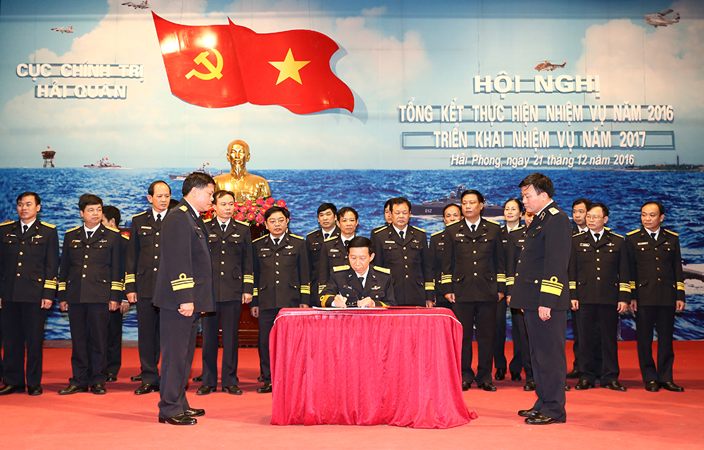 Tại hội nghị, Cục Chính trị đã tổng kết phong trào thi đua Quyết thắng năm 2016 và phát động phong trào thi đua Quyết thắng năm 2017; công bố các quyết định khen thưởng: Thủ tướng Chính phủ tặng Bằng khen cho Cục Chính trị Hải quân, Chuẩn Đô đốc Phạm Văn Vững và Đại tá Nguyễn Túy.