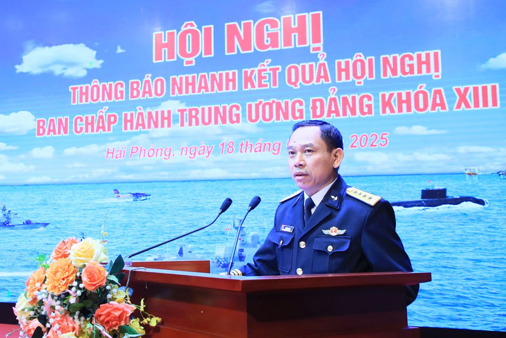 Sáng 18/2, tại Hải Phòng, Đảng uỷ Cục Chính trị Hải quân tổ chức Hội nghị thông báo nhanh kết quả Hội nghị Ban Chấp hành Trung ương Đảng khóa XIII, tháng 1/2025. Đại tá Hồ Thanh Hoàn, Phó Chủ nhiệm Chính trị Hải quân, Bí thư Đảng uỷ Cục Chính trị chủ trì. Dự hội nghị có các đồng chí lãnh đạo, chỉ huy và cán bộ, nhân viên các phòng, ban, đơn vị trong Cục Chính trị.
