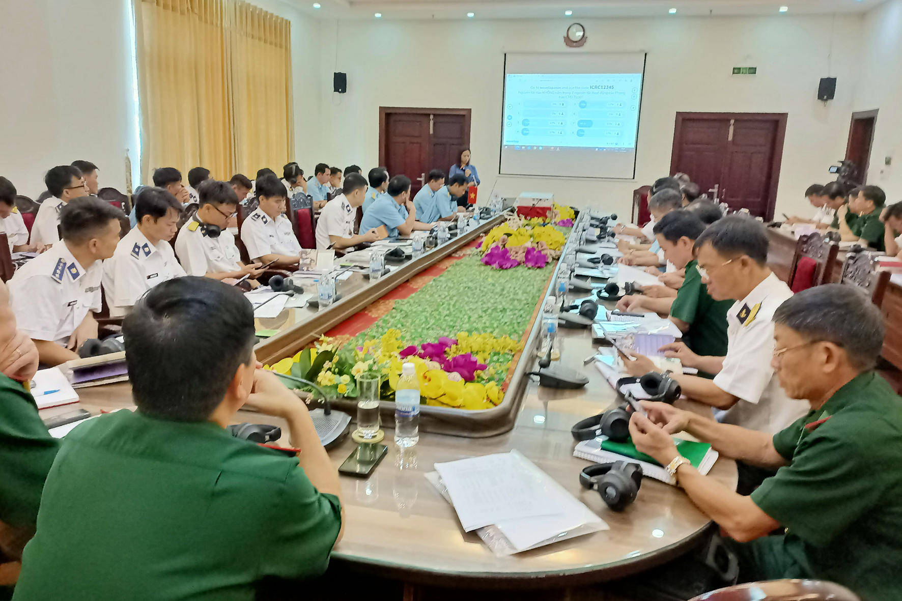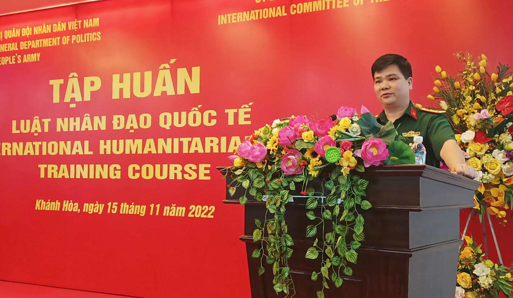 Đại tá Bế Hải Triều, Phó Cục trưởng Cục Dân vận, Tổng cục Chính trị Quân đội nhân dân Việt Nam dự và chỉ đạo lớp tập huấn. Tham dự có đại biểu Trung ương Hội Chữ thập đỏ Việt Nam, Ủy ban Chữ thập đỏ quốc tế khu vực Đông Nam Á và gần 50 cán bộ làm công tác dân vận thuộc Quân chủng Hải quân, Quân chủng Phòng không – Không quân, Bộ đội Biên phòng, Cảnh sát biển Việt Nam.