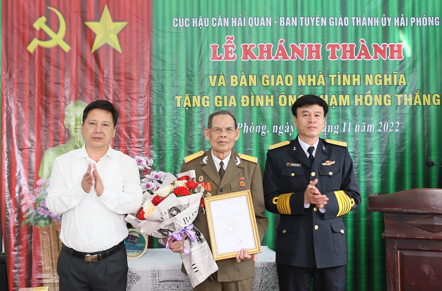 Tại lễ bàn giao nhà tình nghĩa, gia đình ông Phạm Hồng Thắng đã nhận được nhiều phần quà ý nghĩa, thiết thực từ Cục Hậu cần Hải quân, Ban Tuyên giáo Thành ủy Hải Phòng và các cơ quan, đoàn thể địa phương.