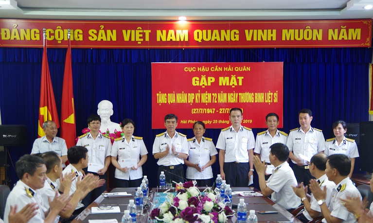 Ngày 25-7, tại Hải Phòng, Cục Hậu cần Hải quân tổ chức gặp mặt và tặng quà thương binh, thân nhân liệt sĩ đang công tác tại Cục Hậu cần nhân kỷ niệm 72 năm Ngày Thương binh, liệt sĩ. Đại tá Đỗ Tấn Hồng, Phó Cục trưởng Cục Hậu cần chủ trì.