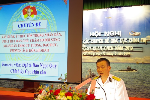 Ngày 16-5, tại Hải Phòng, Cục Hậu cần Hải quân tổ chức Hội nghị học tập các chuyên đề giáo dục chính trị năm 2019. Hơn 300 cán bộ hưởng lương khối cơ quan và các đơn vị trực thuộc Cục Hậu cần khu vực phía Bắc tham dự.