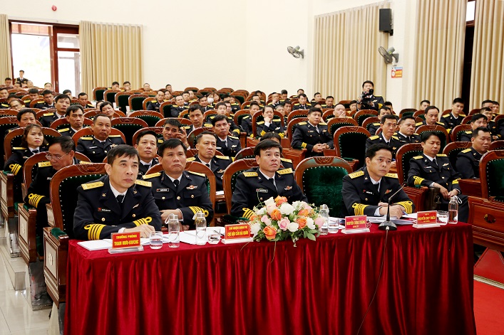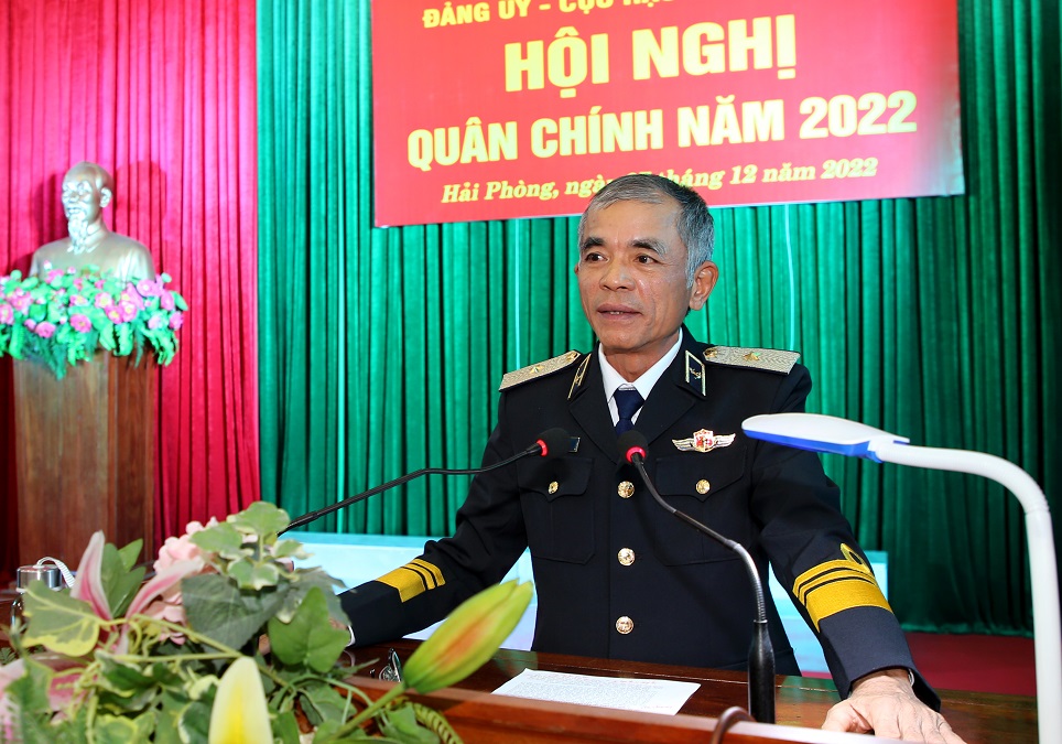 Đại tá Nguyễn Duy Thiều, Chủ nhiệm Hậu cần Hải quân chủ trì. Đại tá Nguyễn Công Thắng, Bí thư Đảng ủy, Chính ủy Cục Hậu cần quán triệt nghị quyết lãnh đạo thực hiện nhiệm vụ năm 2023.