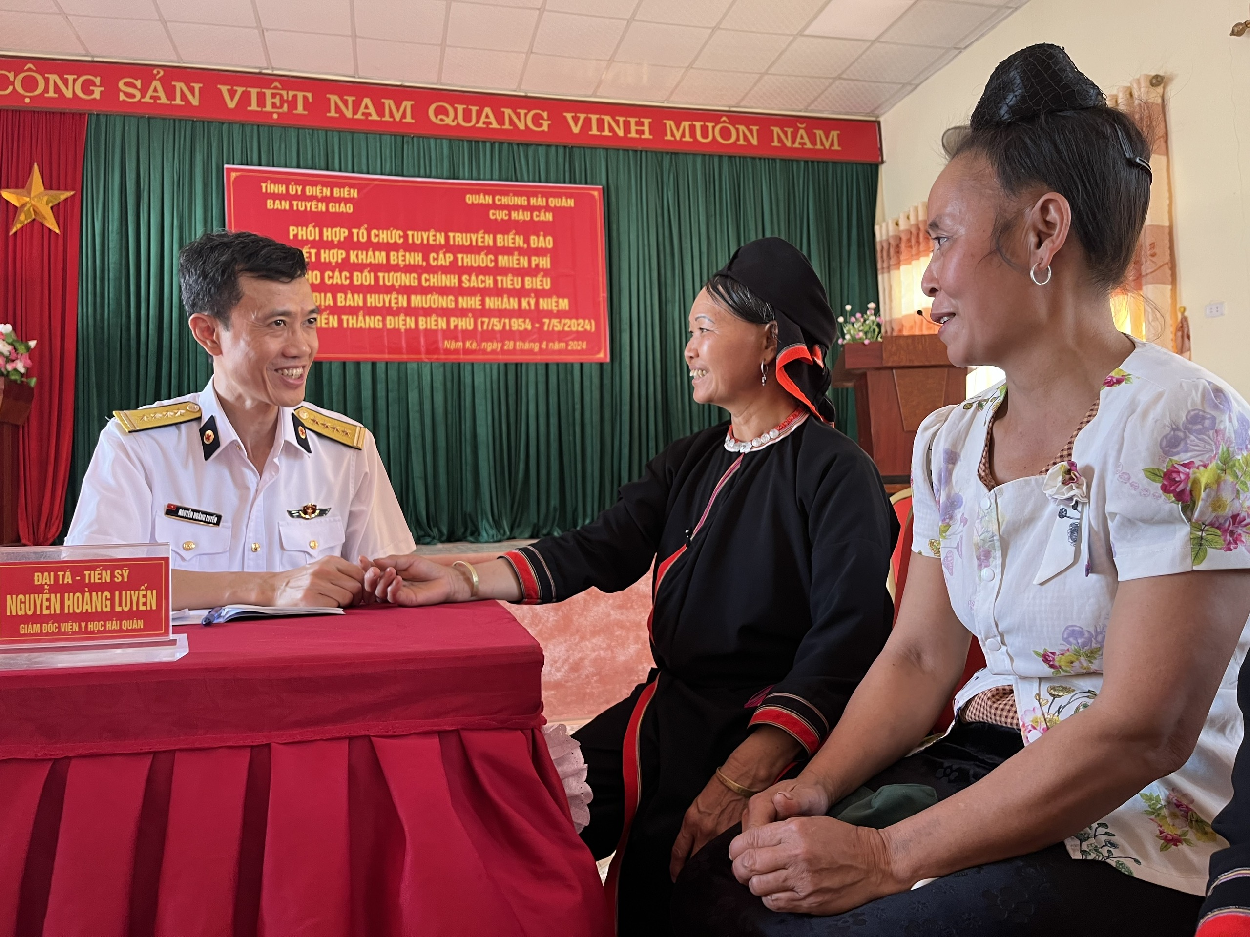 Ngày 28/4, Cục Hậu cần Hải quân phối hợp với chính quyền địa phương tổ chức tư vấn sức khoẻ, khám bệnh, cấp thuốc miễn phí cho đồng bào nhân dân các dân tộc xã Nậm Kè, huyện Mường Nhé, tỉnh Điện Biên nhân kỷ niệm 70 năm Chiến thắng Điện Biên Phủ.