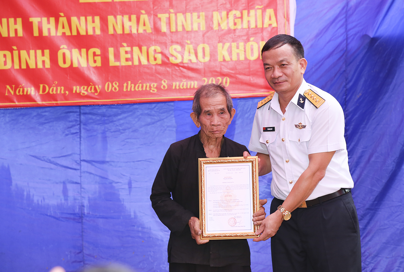 Sáng 8-8, tại xã Nấm Dẩn, huyện Xín Mần, tỉnh Hà Giang, Cục Hậu cần Hải quân phối hợp với Ban Tuyên giáo Tỉnh ủy Hà Giang, chính quyền địa phương và gia đình tổ chức Lễ khánh thành và bàn giao nhà tình nghĩa cho ông Lèng Sào Khón. Tới dự có Đại tá Đào Ngọc Quỳ, Bí thư Đảng ủy, Chính ủy Cục Hậu cần Hải quân; đồng chí Sèn Chỉn Ly, Ủy viên Ban Thường vụ, Trưởng ban Tuyên giáo Tỉnh ủy Hà Giang.
