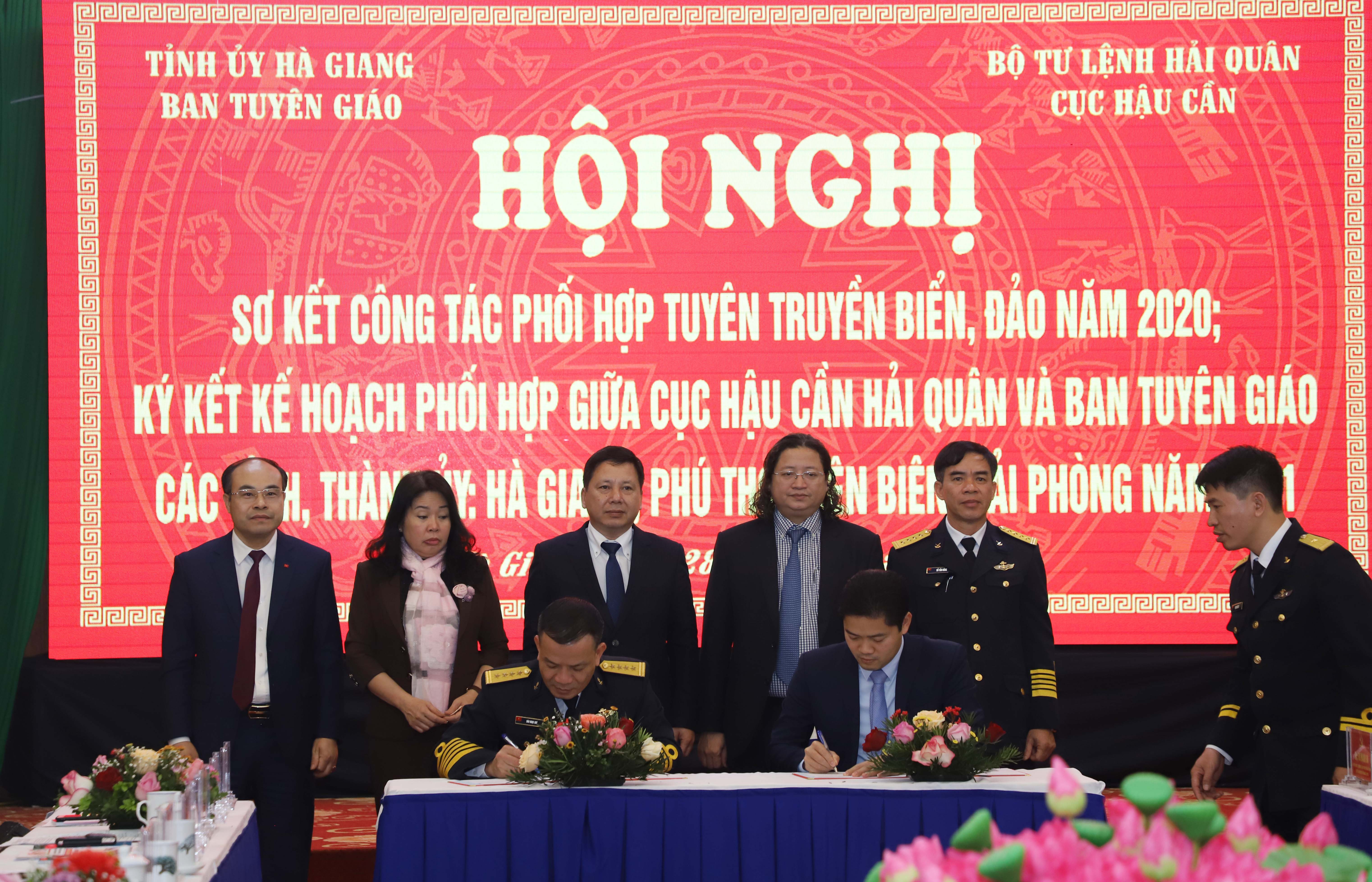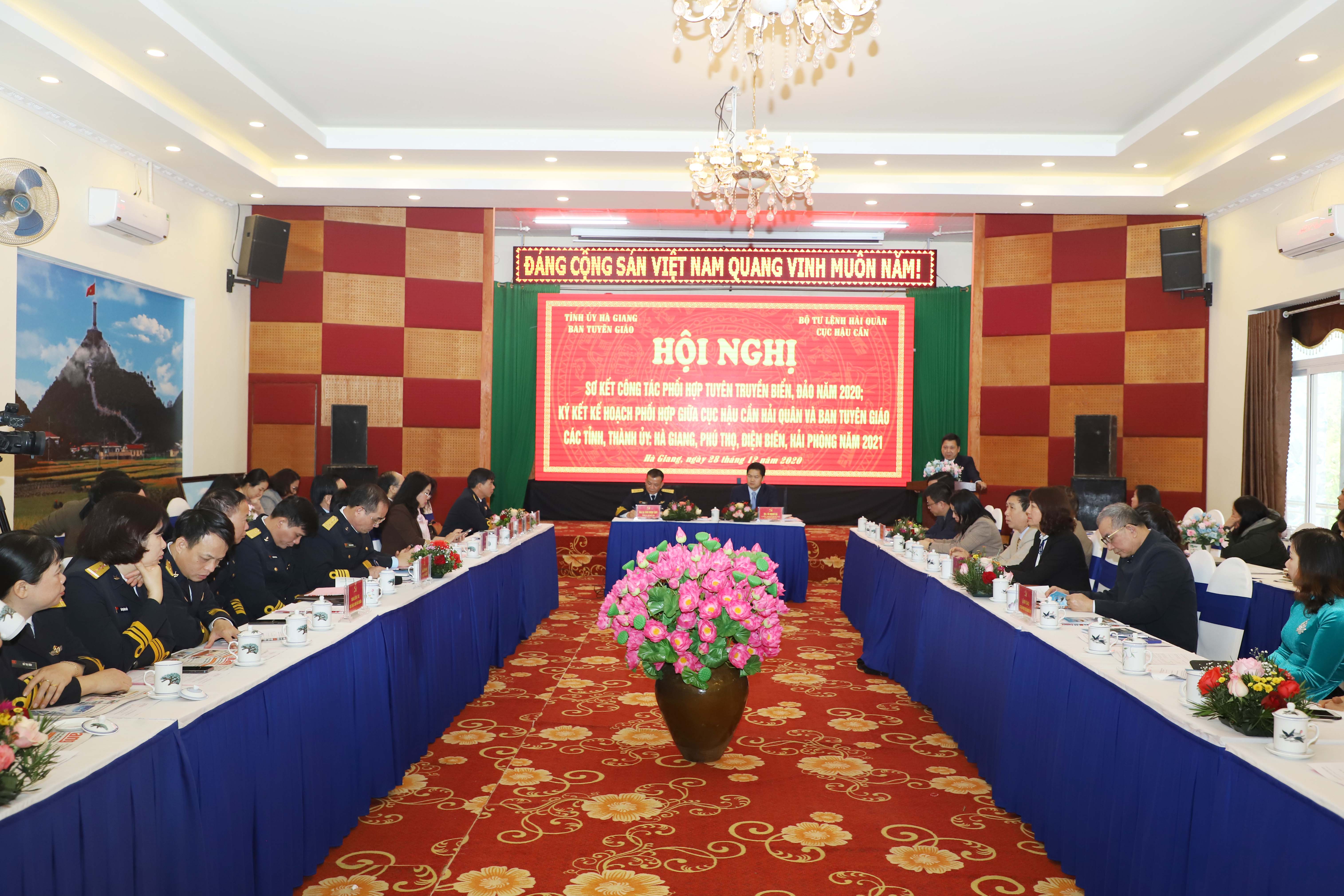 Ngày 28-12, tại Hà Giang, Cục Hậu cần Hải quân phối hợp với Ban Tuyên giáo các tỉnh ủy, thành ủy: Hà Giang, Hải Phòng, Phú Thọ, Điện Biên tổ chức Hội nghị sơ kết công tác phối hợp tuyên truyền biển, đảo (TTBĐ) năm 2020.