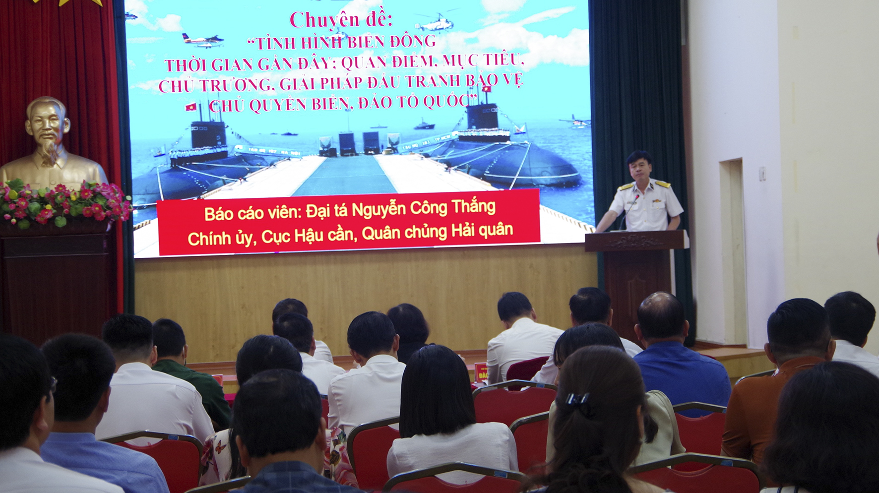 Tại hội nghị, các đại biểu được nghe Đại tá Nguyễn Công Thắng, Chính ủy Cục Hậu cần Hải quân thông tin về tình hình Biển Đông thời gian gần đây và dự báo tình hình thời gian tới; kết quả xây dựng Hải quân Nhân dân Việt Nam hiện đại; quan điểm, mục tiêu, giải pháp đấu tranh bảo vệ chủ quyền biển, đảo của Tổ quốc.