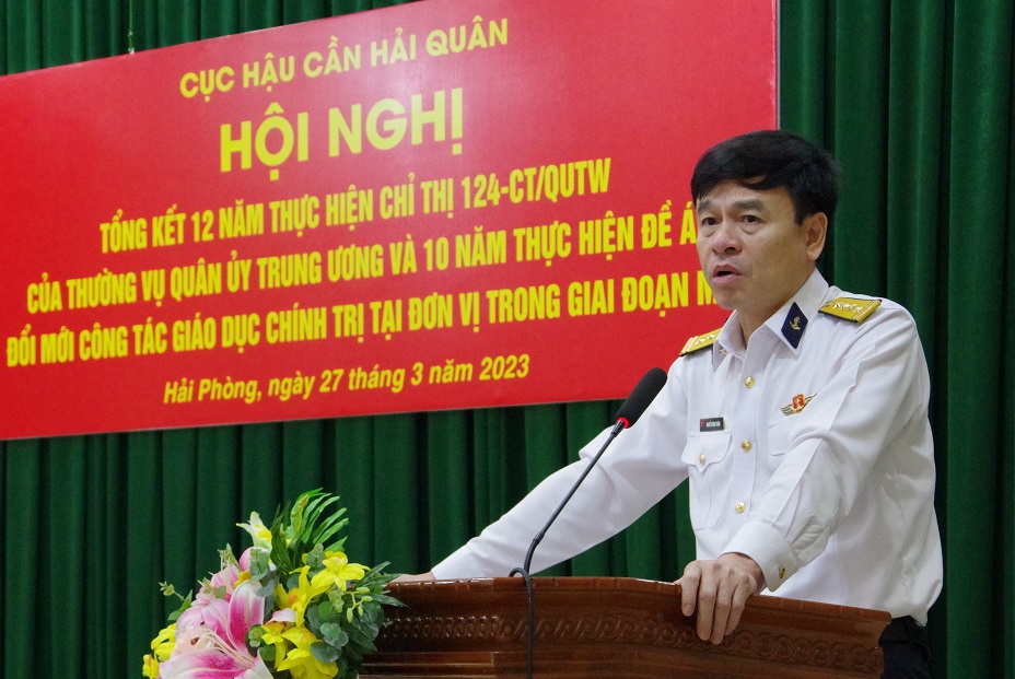 Sáng 27/3, tại Hải Phòng, Cục Hậu cần Hải quân tổ chức Hội nghị tổng kết 12 năm thực hiện Chỉ thị số 124-CT/QUTW ngày 31/3/2011 của Thường vụ Quân ủy Trung ương về tăng cường lãnh đạo, chỉ đạo công tác giáo dục chính trị (GDCT) tại đơn vị trong giai đoạn mới; 10 năm thực hiện Đề án “Đổi mới công tác GDCT tại đơn vị trong giai đoạn mới”. Đại tá Nguyễn Công Thắng, Bí thư Đảng ủy, Chính ủy Cục Hậu cần chủ trì.