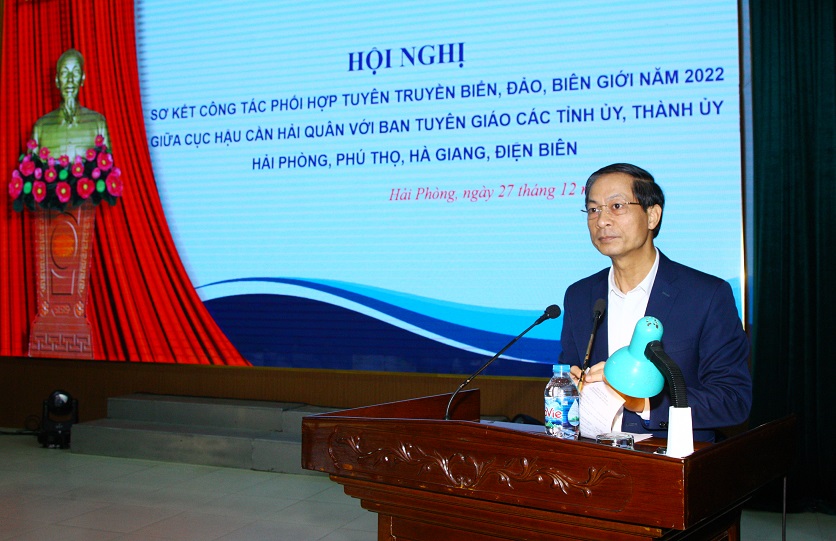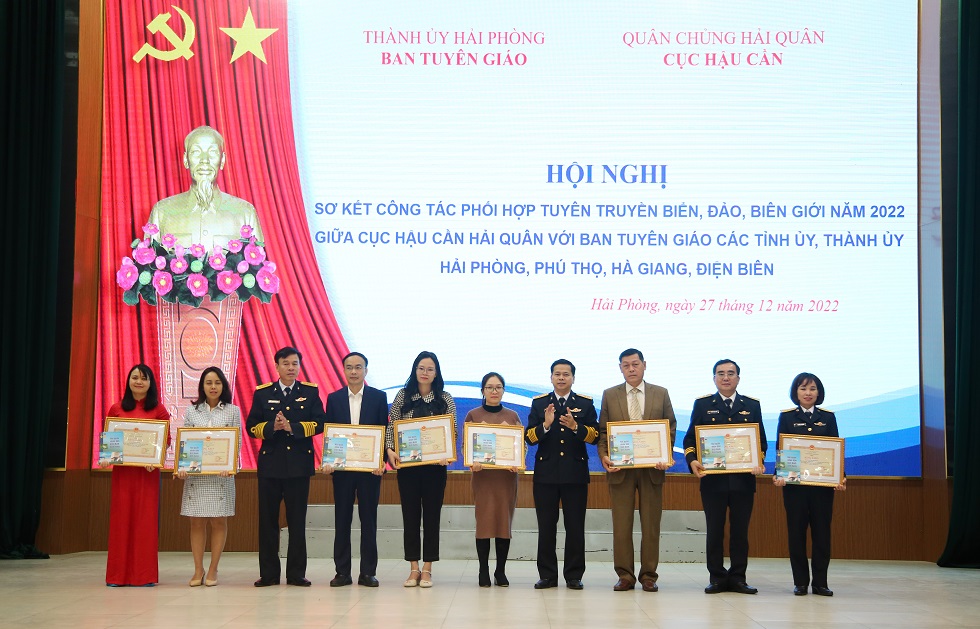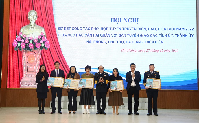 Sáng 27/12, tại TP. Hải Phòng, Cục Hậu cần Hải quân phối hợp với Ban Tuyên giáo Thành ủy TP. Hải Phòng; Tỉnh ủy Phú Thọ, Hà Giang, Điện Biên tổ chức Hội nghị sơ kết chương trình phối hợp tuyên truyền biển, đảo (TTBĐ), biên giới năm 2022 và ký kết chương trình phối hợp năm 2023.
