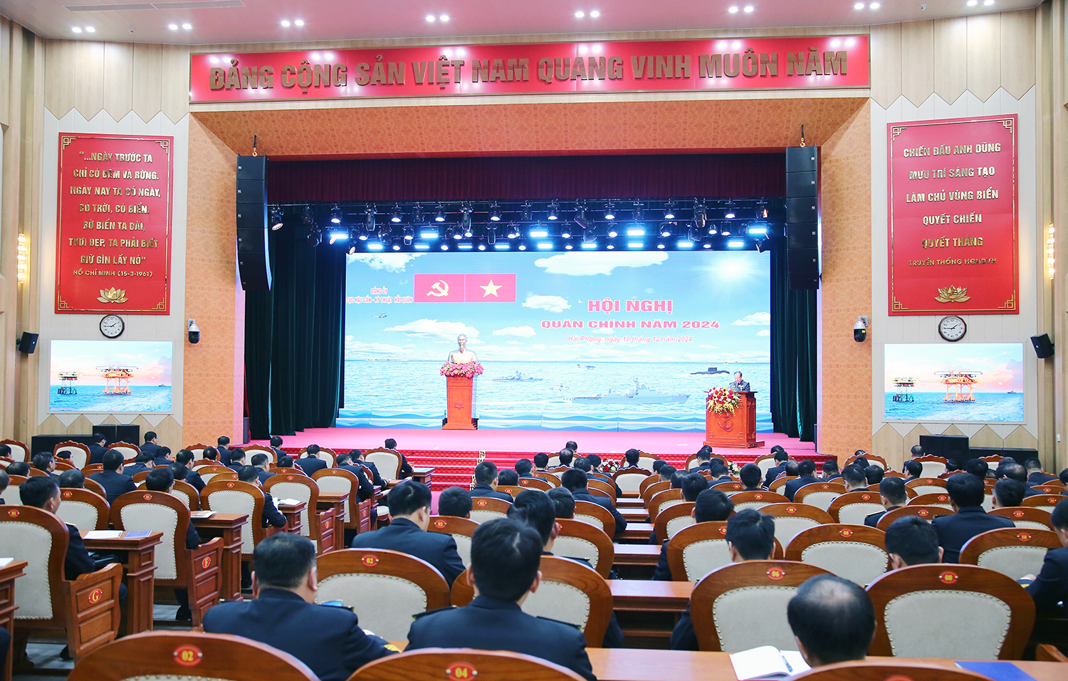 Chiều 10/12, Cục Hậu cần - Kỹ thuật (HC-KT) Hải quân tổ chức Hội nghị Quân chính năm 2024. Chuẩn Đô đốc Nguyễn Đình Hùng, Phó Tư lệnh Hải quân dự và chỉ đạo.