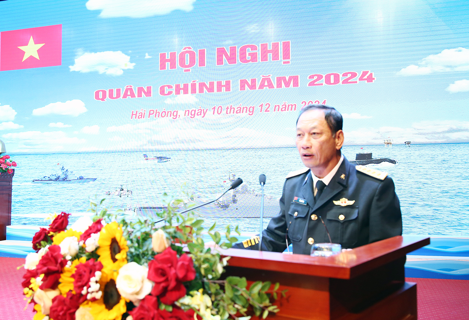 Phát biểu tại hội nghị, thay mặt Đảng ủy, Bộ Tư lệnh Quân chủng, Chuẩn Đô đốc Nguyễn Đình Hùng ghi nhận và biểu dương những thành tích mà Cục HC-KT đã đạt được trong năm 2024.
