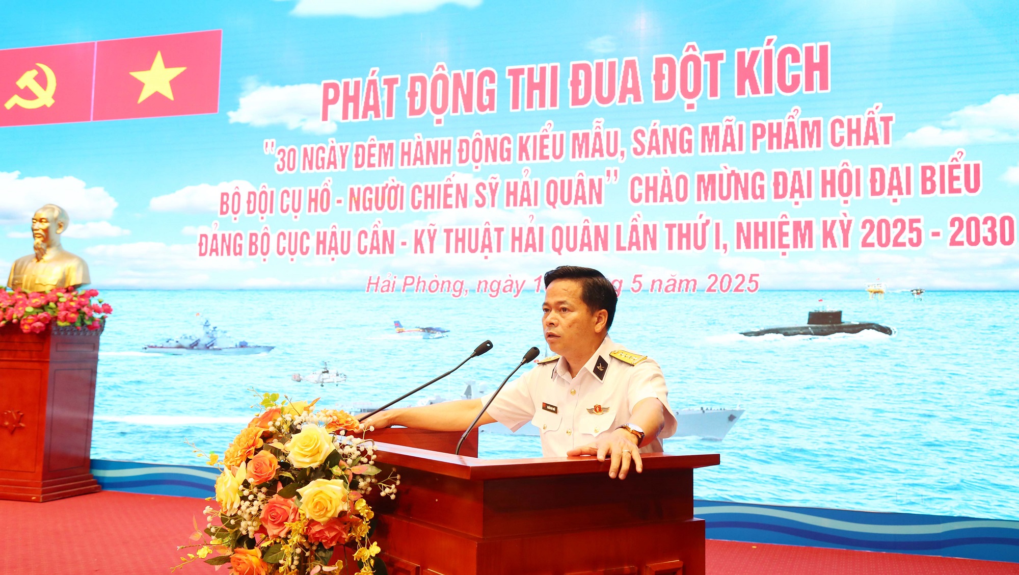 Thay mặt Đảng uỷ, chỉ huy và Hội đồng thi đua - khen thưởng Cục Hậu cần-Kỹ thuật, Đại tá Nguyễn Duy Thiều phát động đợt thi đua đột kích với chủ đề: “30 ngày đêm hành động kiểu mẫu, sáng mãi phẩm chất Bộ đội cụ Hồ - Người chiến sĩ Hải quân”.