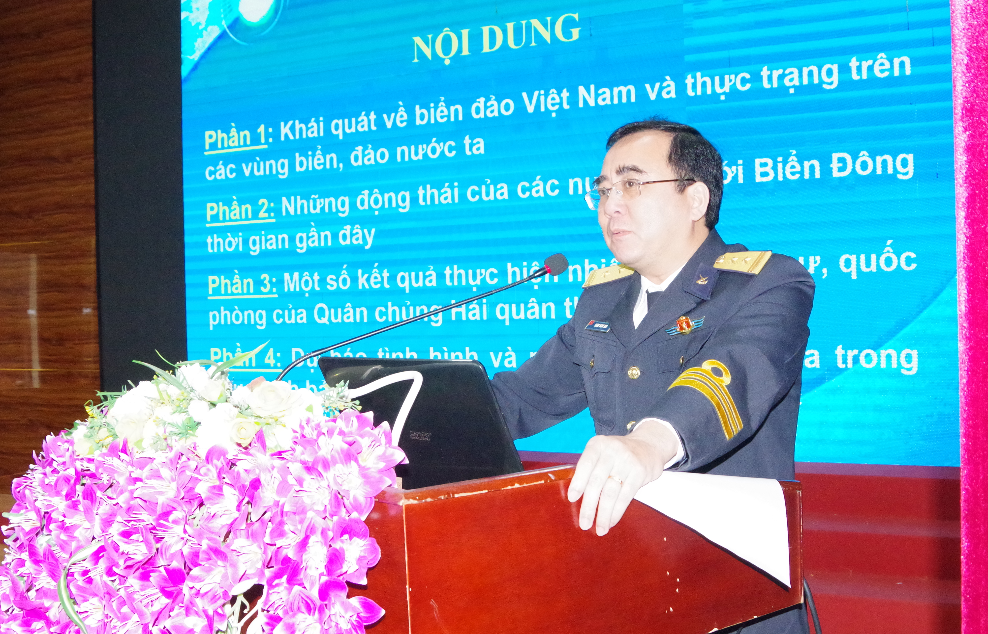 Tại hội nghị, báo cáo viên của Cục Hậu cần đã thông tin khái quát về biển đảo Việt Nam và thực trạng trên các vùng biển, đảo nước ta; những động thái của các nước đối với Biển Đông thời gian gần đây; một số kết quả thực hiện nhiệm vụ quân sự, quốc phòng của Quân chủng Hải quân; dự báo tình hình và những vấn đề đặt ra trong bảo vệ chủ quyền biển, đảo của Tổ quốc trong tình hình mới.