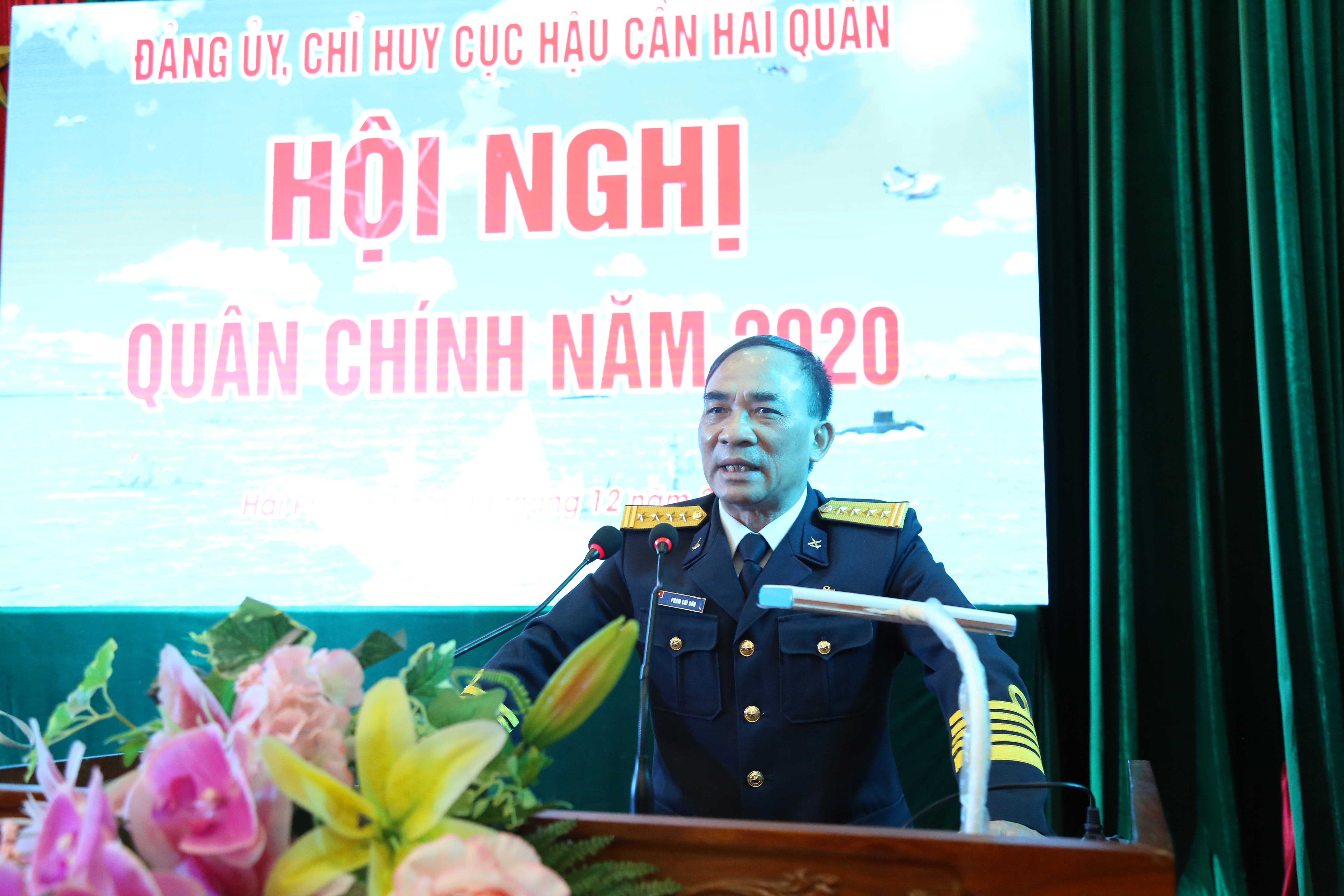 Chiều 14-12, Cục Hậu cần Hải quân tổ chức Hội nghị Quân chính năm 2020. Đại tá Phạm Chí Sơn, Phụ trách Cục trưởng Cục Hậu cần chủ trì.