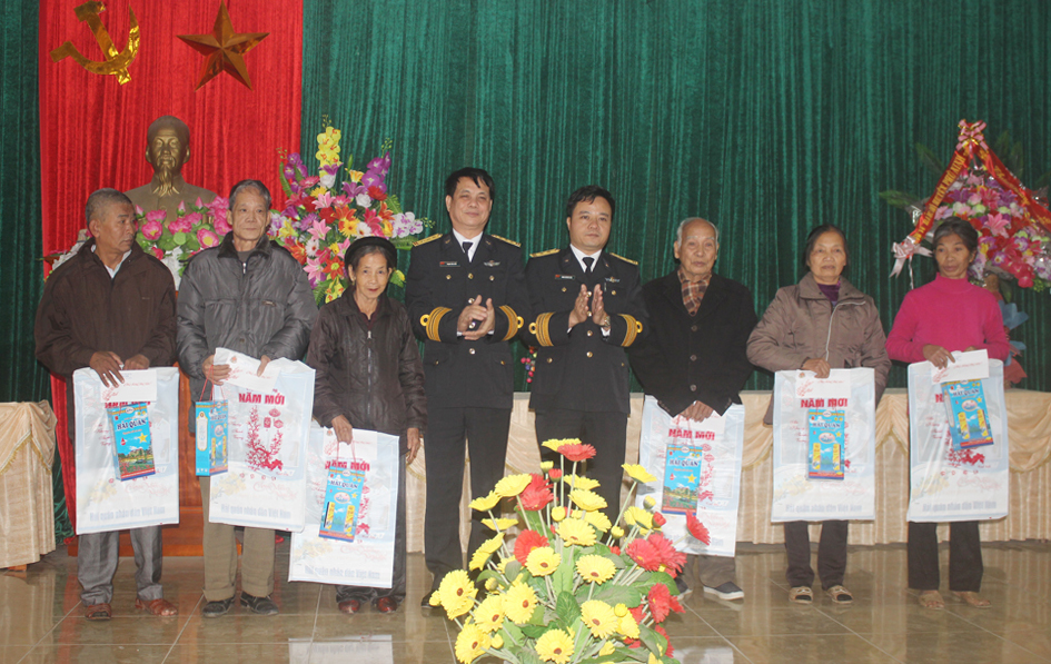 Ngày 18-1, đại diện Cục Hậu cần Hải quân đã đến thăm, tặng quà 2 Mẹ Việt Nam anh hùng, 6 đồng chí thương binh, 1 nạn nhân chất độc da cam và 6 thân nhân liệt sỹ của 2 xã Vĩnh Phú, Bình Bộ thuộc huyện Phù Ninh, tỉnh Phú Thọ, mỗi suất quà trị giá 500.000đ