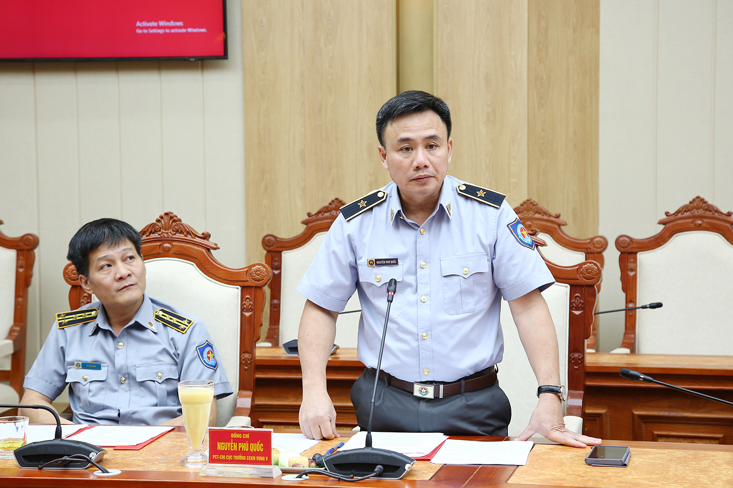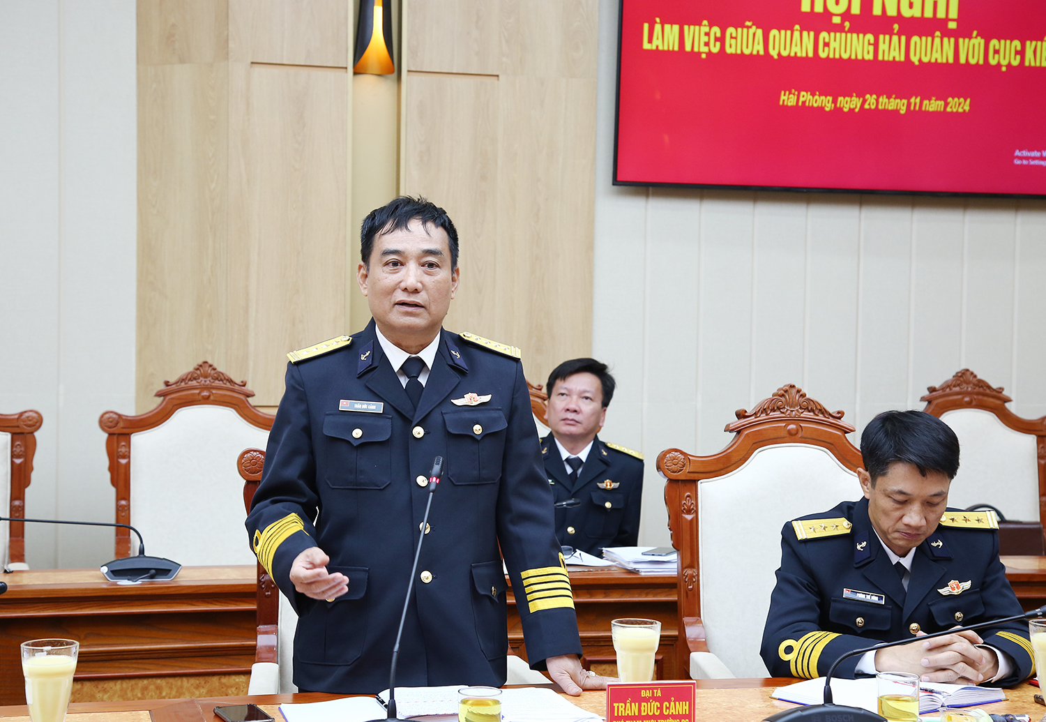 Thủ trưởng Phòng Tác chiến, Bộ Tham mưu Hải quân báo cáo kết quả phối hợp giữa Quân chủng Hải quân và Cục kiểm ngư năm 2024