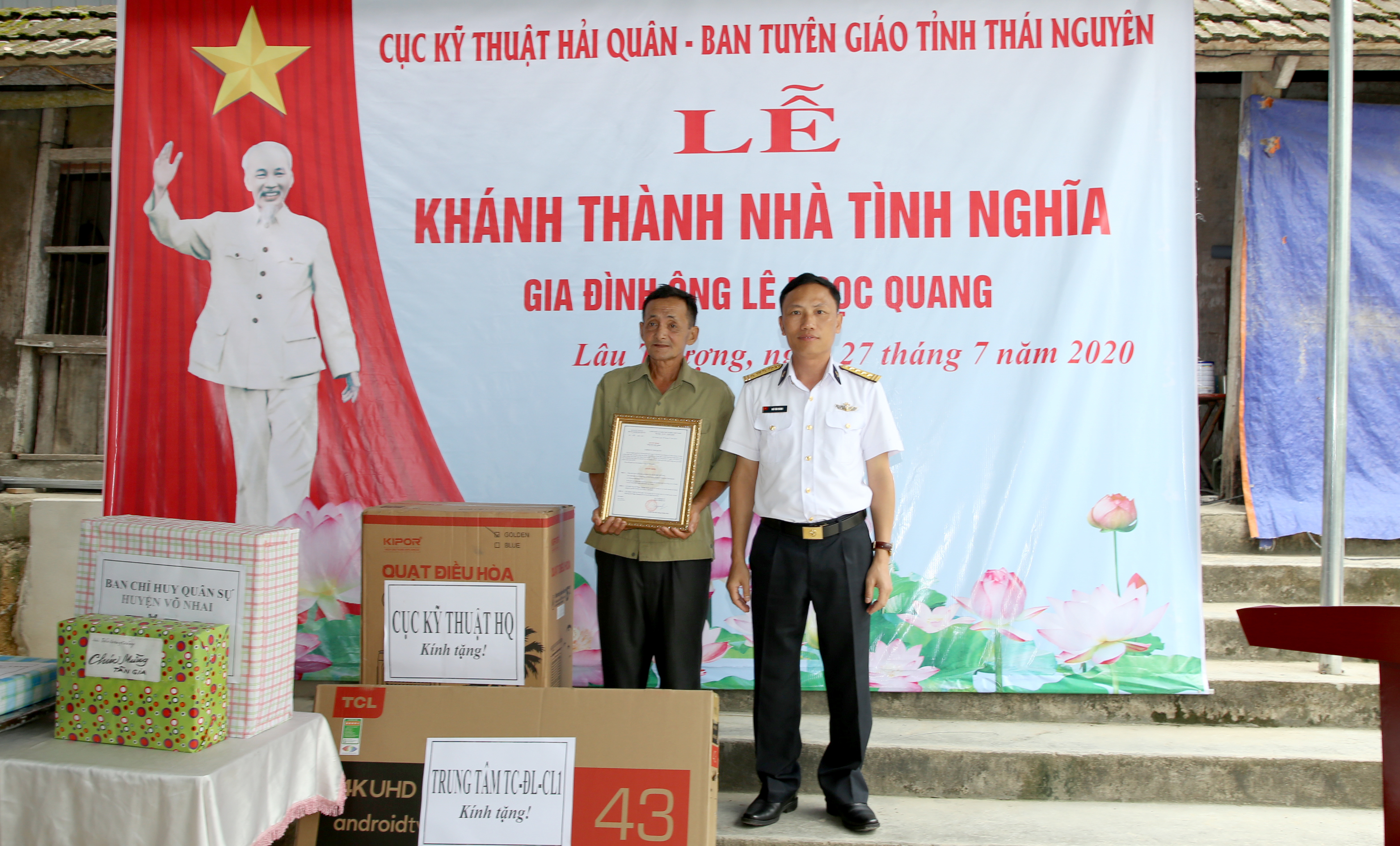 Sáng 27-7, Cục Kỹ thuật Hải quân phối hợp với Ban Tuyên giáo Tỉnh ủy Thái Nguyên tổ chức lễ bàn giao và tặng Nhà tình nghĩa cho ông Lê Ngọc Quang ở xóm Làng Hang, xã Lâu Thượng, huyện Võ Nhai, tỉnh Thái Nguyên.