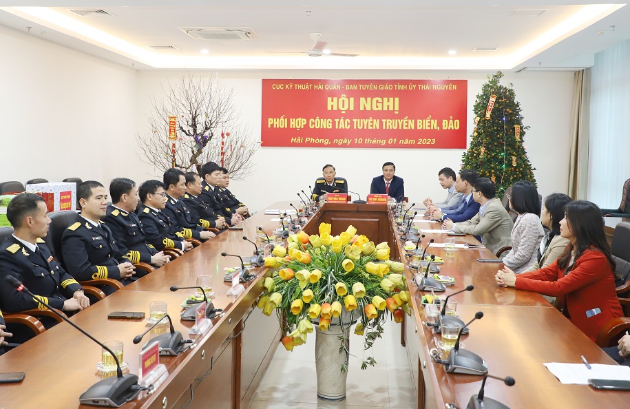 Tại hội nghị, hai đơn vị đã thống nhất một số nội dung công tác phối hợp tuyên truyền biển, đảo năm 2023, trọng tâm là tuyên truyền về Công ước của Liên hợp quốc về Luật Biển năm 1982; kỷ niệm 50 năm chiến thắng đế quốc Mỹ phong tỏa sông, biển miền Bắc bằng thủy lôi, bom từ trường; thành tựu phát triển kinh tế - xã hội của tỉnh Thái Nguyên; kết quả bảo vệ chủ quyền biển, đảo của bộ đội Hải quân nói chung và Cục Kỹ thuật nói riêng; các sự kiện quan trọng của Quân chủng Hải quân và địa phương...
