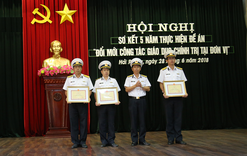 Tại hội nghị, Chính ủy Cục Kỹ thuật Hải quân đã trao Giấy khen cho tập thể và cá nhân có thành tích tốt trong thực hiện Đề án “Đổi mới công tác giáo dục chính trị tại đơn vị trong giai đoạn mới”. Về tập thể: Ban Chính trị Kho 858, Ban Chính trị Kho 703. Về cá nhân: Thiếu tá Phạm Minh Tuấn, Trợ lý Ban Chính trị Kho 858; Đại úy Vũ Trọng Giáp, Trợ lý Tuyên huấn, Phòng Chính trị Cục.