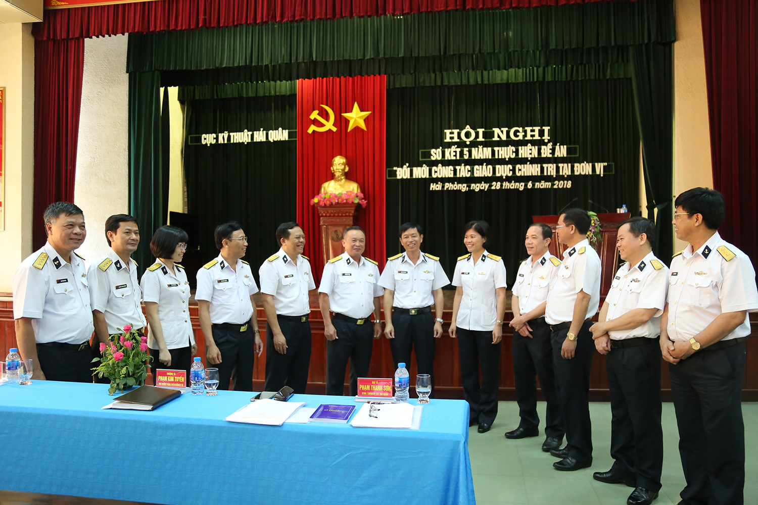 Ngày 28-6, tại Hải Phòng, Cục Kỹ thuật Hải quân tổ chức Hội nghị sơ kết 5 năm thực hiện Đề án “Đổi mới công tác giáo dục chính trị tại đơn vị trong giai đoạn mới”. Đại tá Phạm Thanh Sơn, Bí thư Đảng ủy, Chính ủy Cục Kỹ thuật Hải quân dự và chủ trì hội nghị.