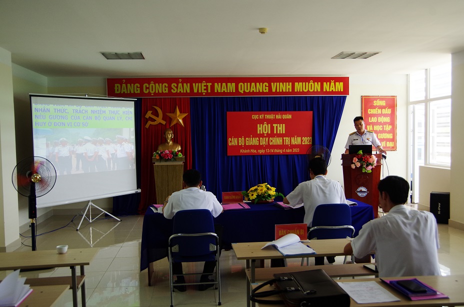 Chiều 14/4, tại TP. Cam Ranh, tỉnh Khánh Hòa, Cục Kỹ thuật Hải quân tổ chức bế mạc Hội thi cán bộ giảng dạy chính trị năm 2023. Dự bế mạc có Chuẩn Đô đốc Phạm Văn Luyện, Phó Chủ nhiệm Chính trị Hải quân; Đại tá Ngô Văn Thành, Bí thư Đảng uỷ, Chính ủy Cục Kỹ thuât; Đại tá Lê Hồng Quang, Phó Cục trưởng Cục Kỹ thuật; đại diện chỉ huy các đơn vị trực thuộc Cục khu vực Khánh Hòa.