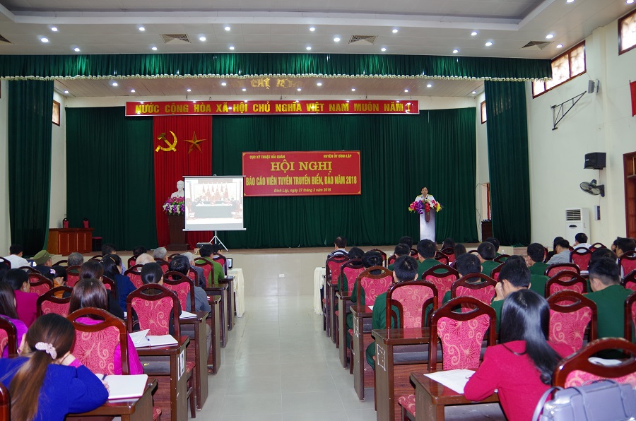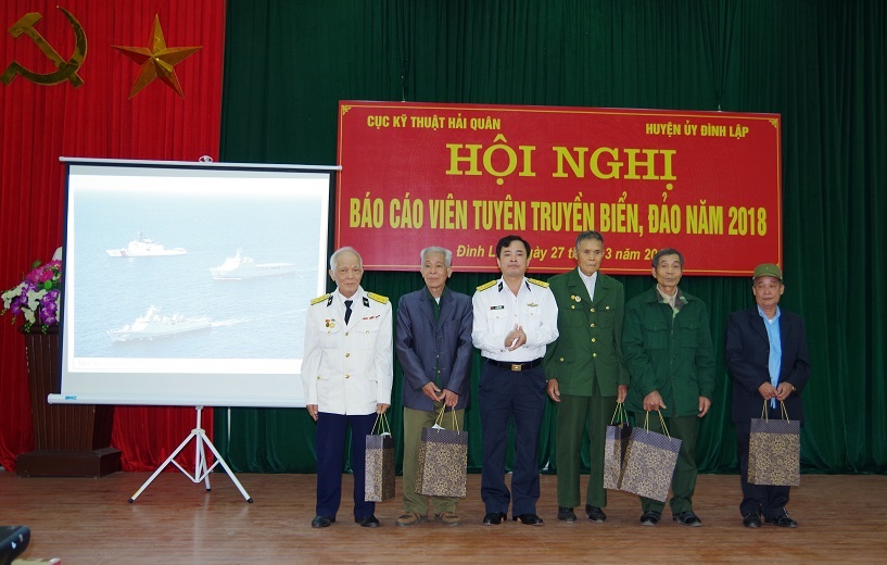 Ngày 27 và 28-3, Cục Kỹ thuật Hải quân phối hợp với Ban Tuyên giáo Tỉnh ủy Lạng Sơn tổ chức nói chuyện chuyên đề cho gần 300 cán bộ chủ chốt và báo cáo viên của huyện Đình Lập, tỉnh Lạng Sơn.