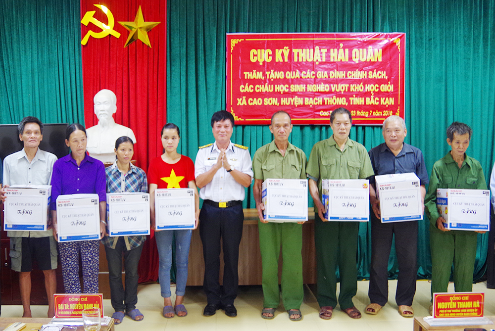 Thủ trưởng Cục Kỹ thuật Hải quân tặng quà các gia đình có hoàn cảnh khó khăn xã Cao Sơn