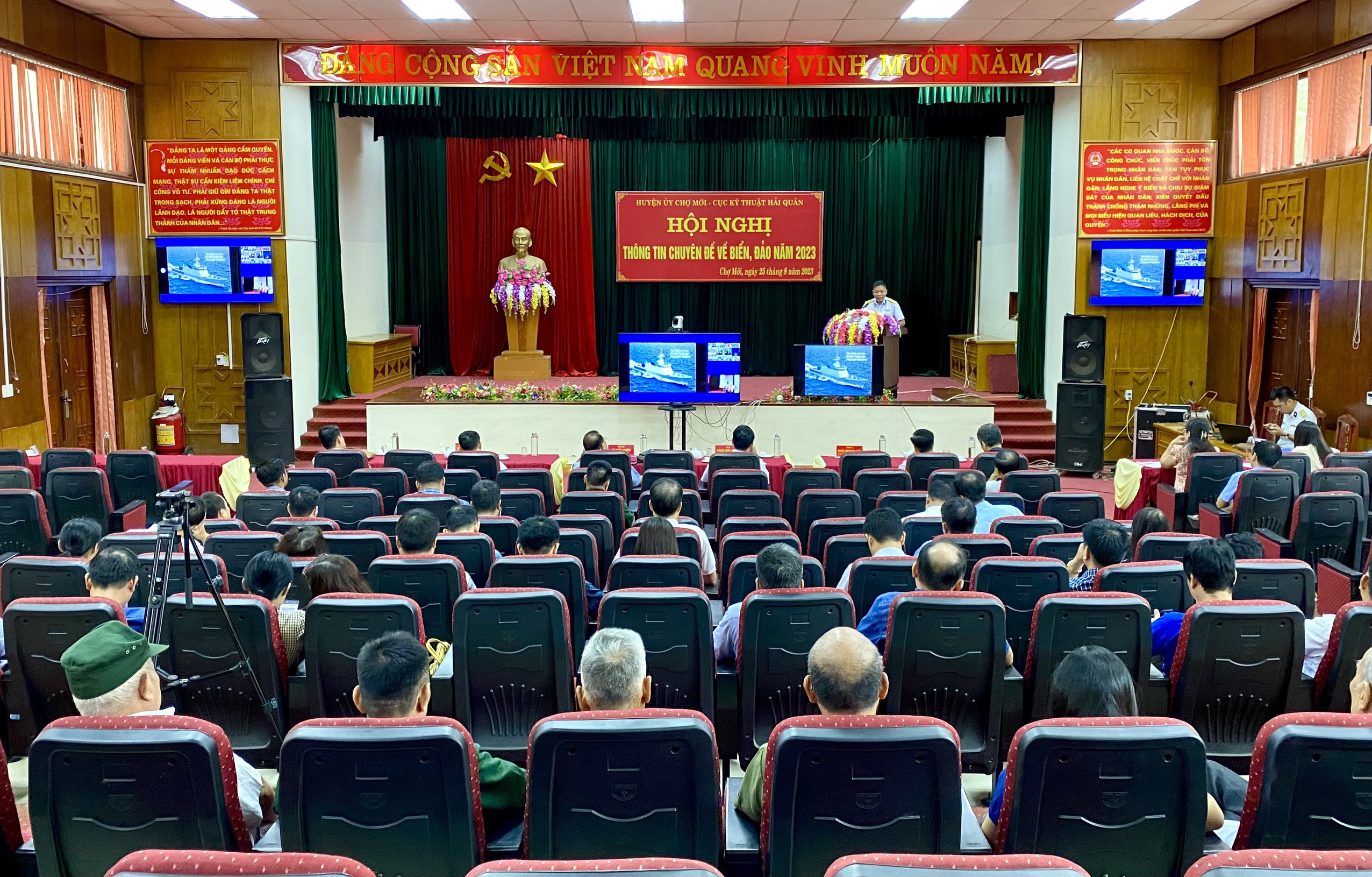 Ngày 24 và 25/8, Cục Kỹ thuật Hải quân phối hợp với Ban Tuyên giáo Tỉnh ủy Bắc Kạn tổ chức Hội nghị cung cấp thông tin về biển đảo cho cán bộ chủ chốt cấp huyện, báo cáo viên, cộng tác viên dư luận xã hội tại các huyện Pác Nặm, Ngân Sơn và Chợ Mới.
