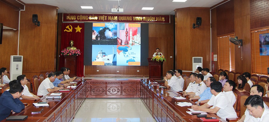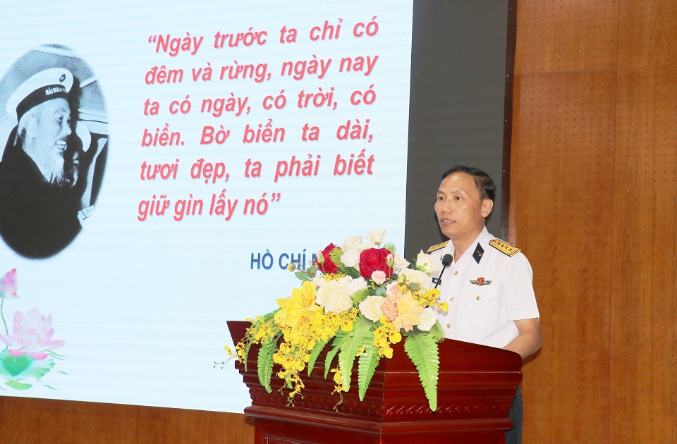 Đại tá Ngô Văn Thành đã thông tin đến các đại biểu về tình hình biển, đảo trong thời gian gần đây; kết quả bảo vệ chủ quyền biển, đảo của Hải quân nhân dân Việt Nam; tình hình thế giới, trong nước tác động đến tình hình Biển Đông; động thái của các nước đối với Biển Đông; quan điểm, chủ trương, chính sách của Đảng trong đấu tranh bảo vệ chủ quyền biển, đảo của Tổ quốc trong tình hình mới.