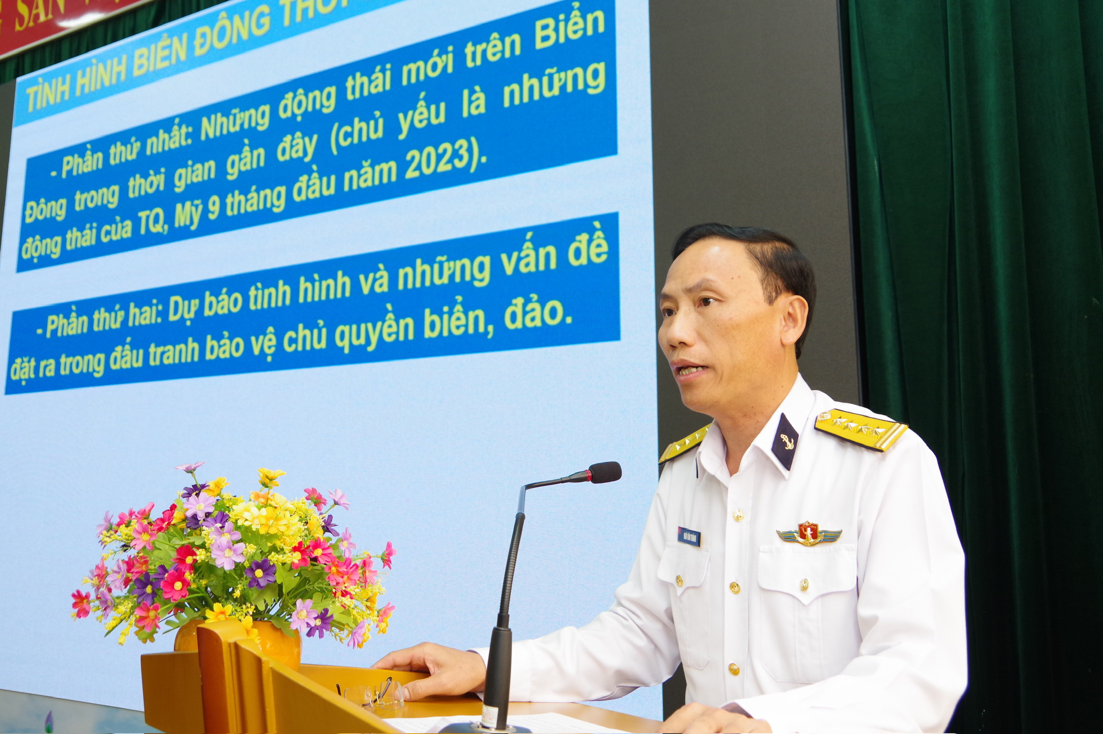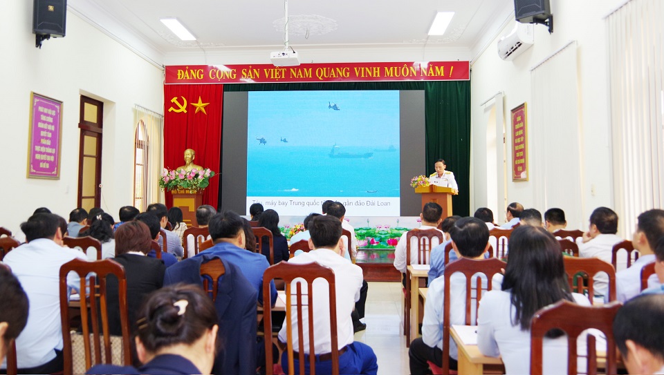 Đại tá Ngô Văn Thành đã thông tin đến các đại biểu về tình hình biển, đảo trong thời gian gần đây; tình hình thế giới, trong nước tác động đến tình hình Biển Đông; động thái của các nước đối với Biển Đông; kết quả bảo vệ chủ quyền biển, đảo của Hải quân nhân dân Việt Nam; quan điểm, chủ trương, chính sách của Đảng trong đấu tranh bảo vệ chủ quyền biển, đảo của Tổ quốc trong tình hình mới.