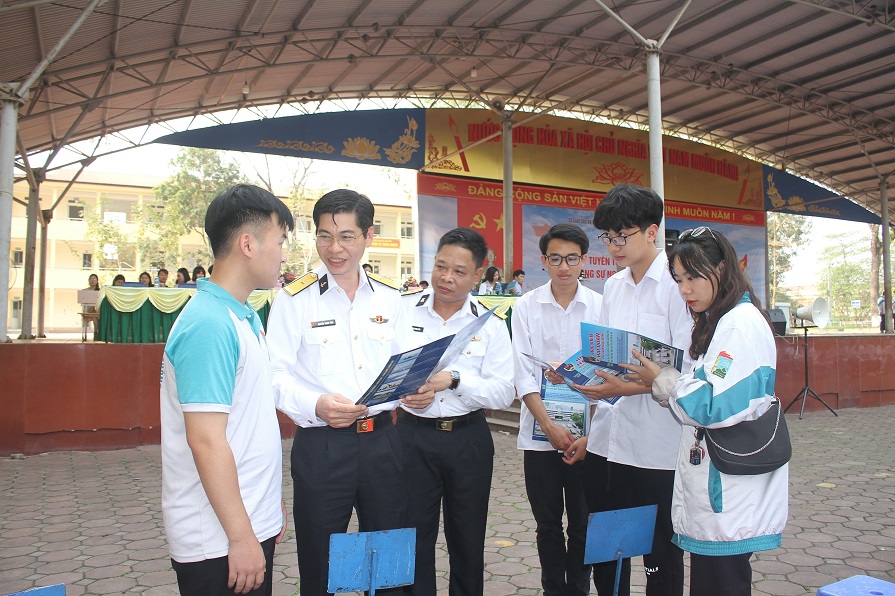 Các em học sinh còn được tư vấn, cung cấp các thông tin về điều kiện, quy trình tuyển sinh vào Học viện Hải quân; những chính sách thu hút nguồn nhân lực chất lượng cao xây dựng Quân chủng Hải quân cách mạng, chính quy, tinh nhuệ, hiện đại.