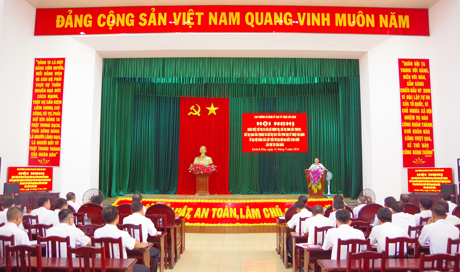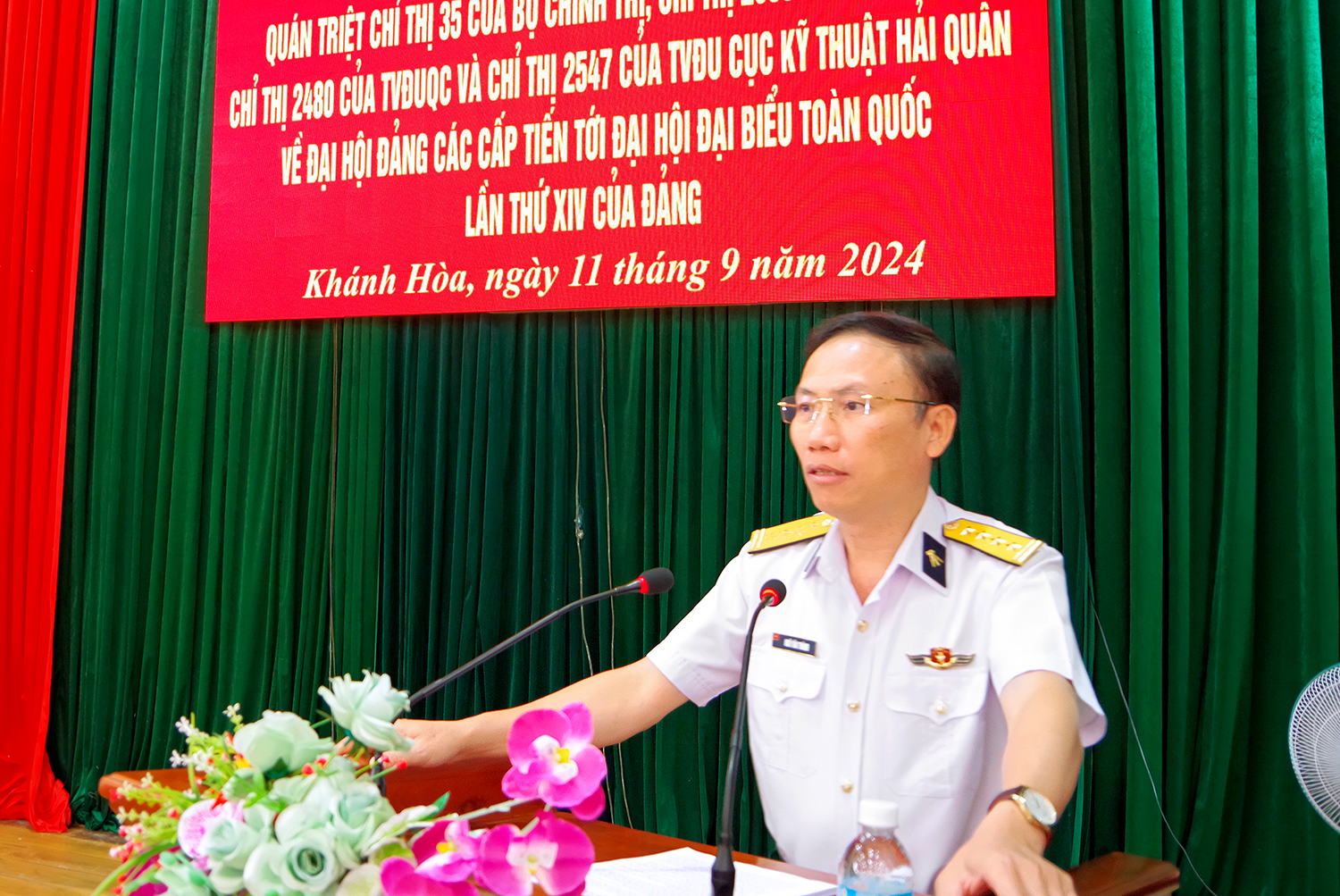 Sáng 11/9, tại TP. Cam Ranh, tỉnh Khánh Hoà, Thường vụ Đảng ủy Cục Kỹ thuật Hải quân tổ chức hội nghị học tập, quán triệt chỉ thị của Bộ Chính trị, Thường vụ Quân ủy Trung ương, Thường vụ Đảng ủy Quân chủng và Đảng ủy Cục Kỹ thuật về đại hội đảng các cấp tiến tới Đại hội đại biểu toàn quốc lần thứ XIV của Đảng cho bí thư, phó bí thư, cấp ủy viên các đơn vị trực thuộc Cục Kỹ thuật đóng quân ở Khánh Hòa, TP. Hồ Chí Minh và Cần Thơ. Đại tá Ngô Văn Thành, Bí thư Đảng ủy, Chính ủy Cục chủ trì.