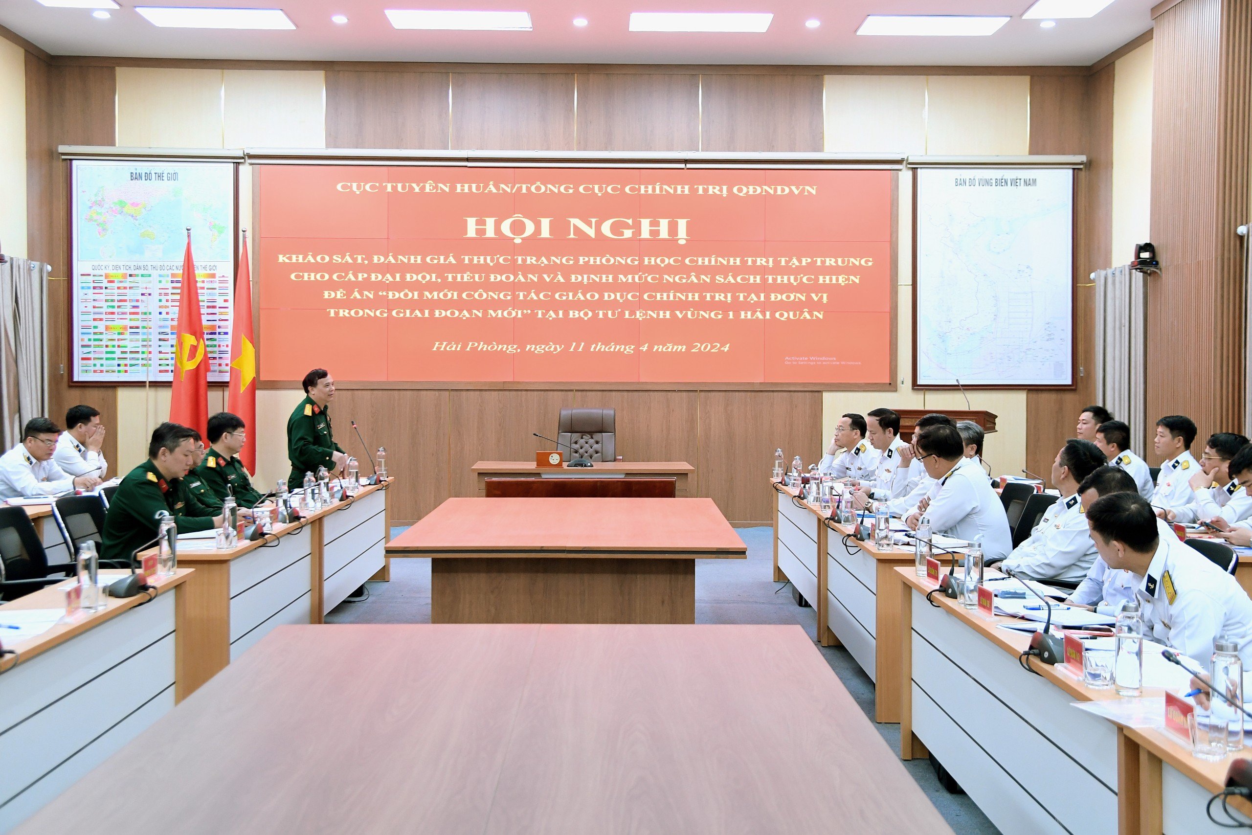 Sáng 11/4, tại Hải Phòng, đoàn công tác của Cục Tuyên huấn, Tổng cục Chính trị QĐND Việt Nam đã tiến hành khảo sát, đánh giá thực trạng phòng học chính trị tập trung cho cấp đại đội, tiểu đoàn và định mức ngân sách thực hiện Đề án “Đổi mới công tác giáo dục chính trị tại đơn vị trong giai đoạn mới” tại Vùng 1 Hải quân.