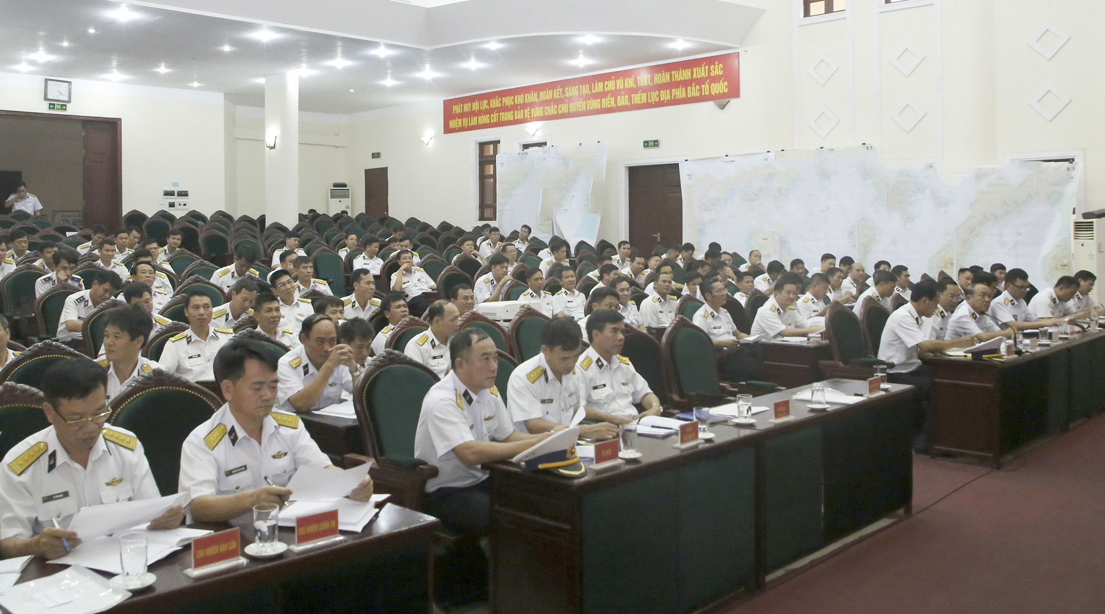 Chiều 19-8, tại Hải Phòng, Cụm lực lượng Hải quân 1 tổ chức rút kinh nghiệm diễn tập năm 2019. Chuẩn Đô đốc Nguyễn Trọng Bình, Phó Tư lệnh Hải quân dự và chỉ đạo hội nghị.