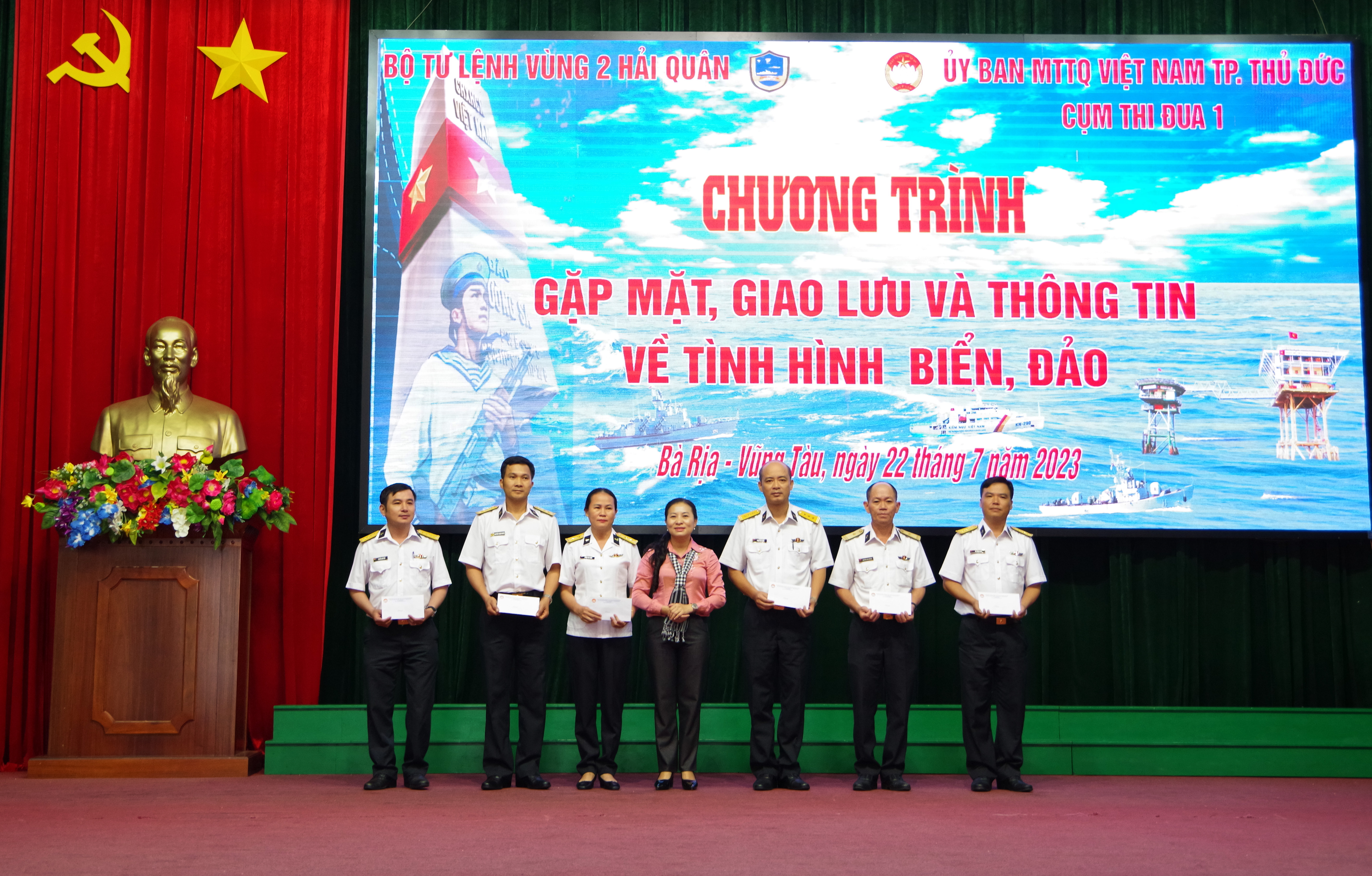Ngày 22/7, tại TP. Vũng Tàu, tỉnh Bà Rịa-Vũng Tàu, đoàn đại biểu Cụm thi đua 1 - Ủy ban Mặt trận Tổ quốc Việt Nam thành phố Thủ Đức, TP. Hồ Chí Minh gồm 9 phường (Linh Tây, Bình Thọ, An Phú, Cát Lái, Hiệp Phú, Trường Hạnh, Phước Long B, Thảo Điền, Linh Chiểu) đến thăm, giao lưu với Bộ Tư lệnh Vùng 2. Đại tá Lê Bá Quân, Phó Tư lệnh, Tham mưu trưởng Vùng 2 chủ trì tiếp đoàn.