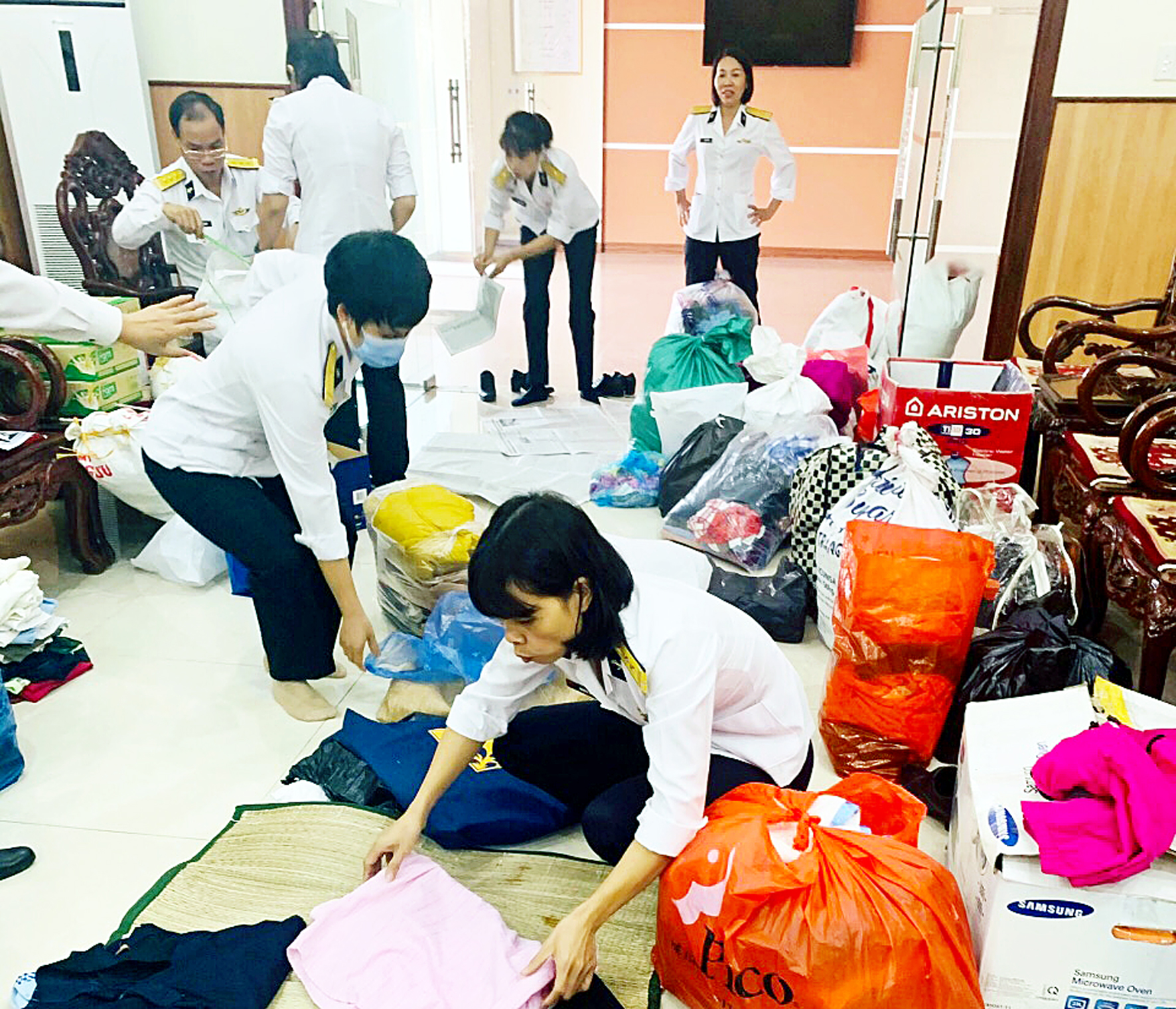 Cán bộ, nhân viên Viện Kỹ thuật Hải quân quyên góp quần áo, nhu yếu phẩm ủng hộ nhân dân Hà Tĩnh
