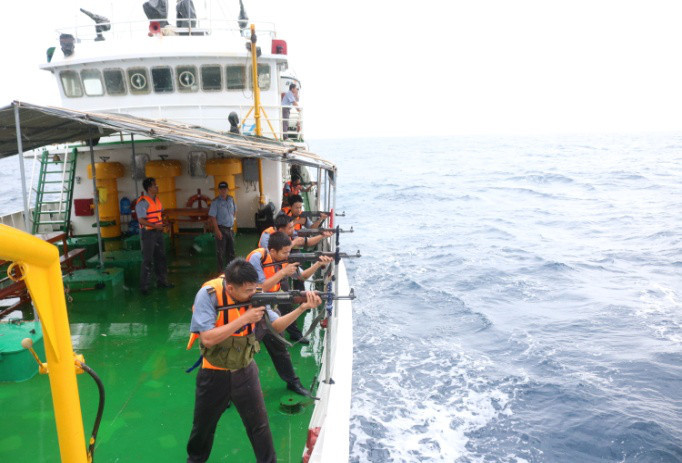 Cùng lực lượng kiểm ngư huấn luyện bắn đạn thật trên biển